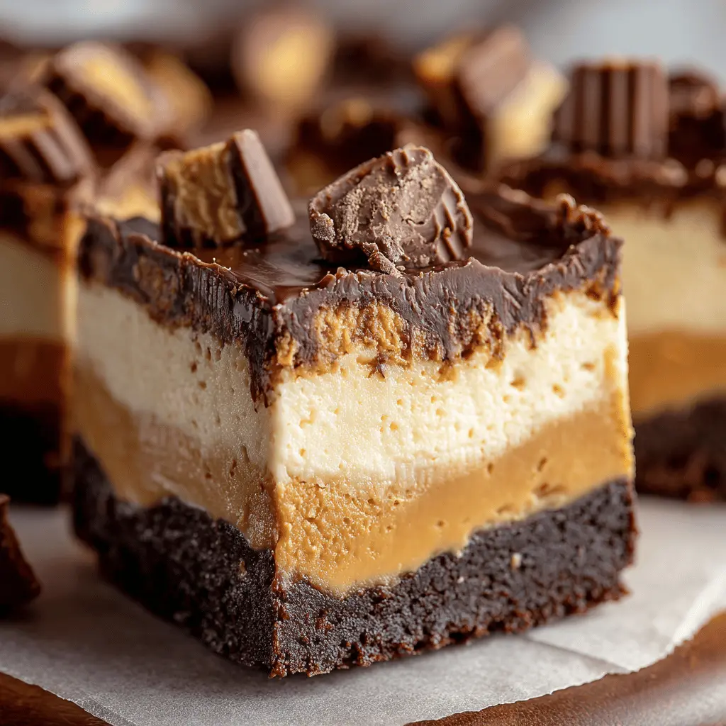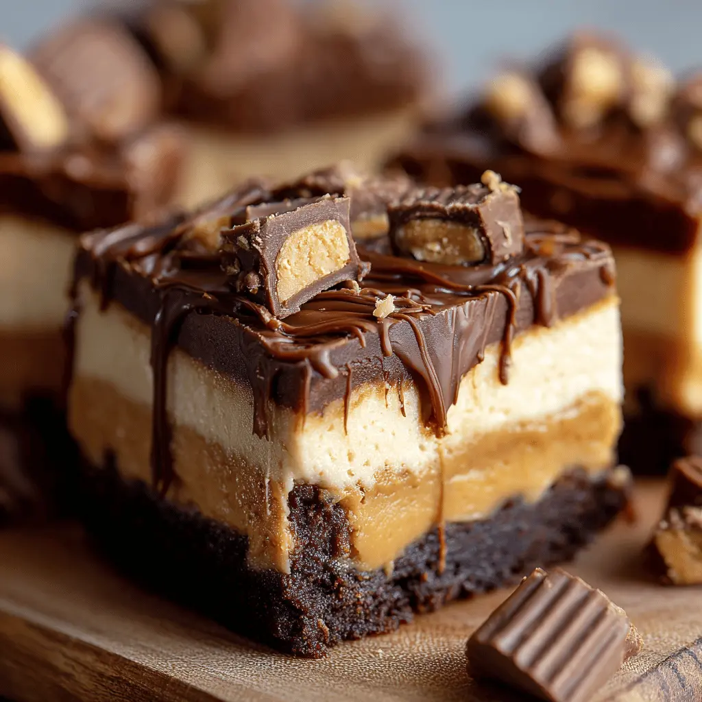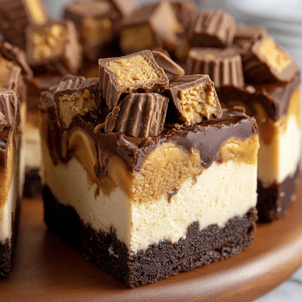 A deliciously rich and creamy fudge that combines the flavors of peanut butter cups and cheesecake.