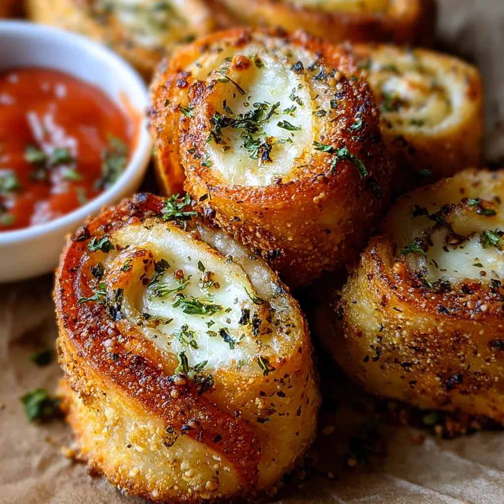 These crispy mozzarella stuffed garlic butter pizza rolls are the perfect comfort snack that combines cheesy goodness with savory flavors.