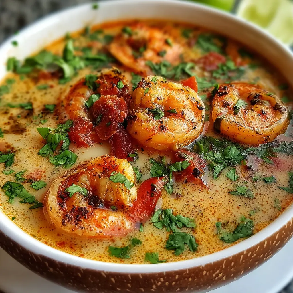 A rich and creamy coconut shrimp soup that’s bursting with tropical flavors.