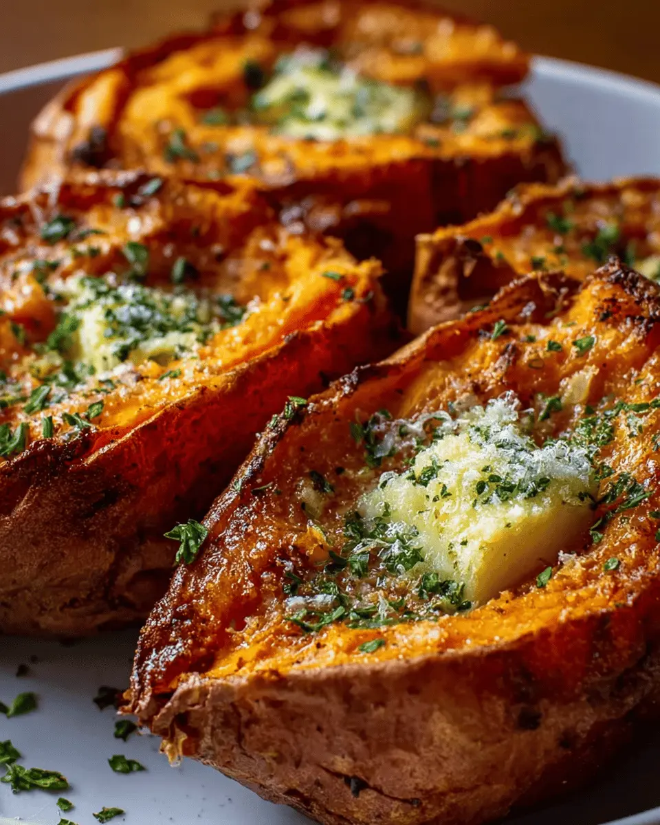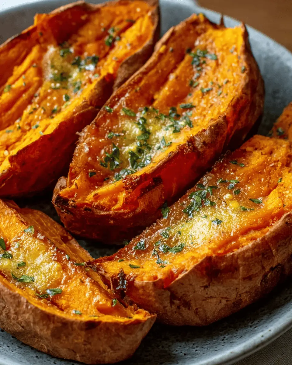 - Once crispy, remove the sweet potatoes and garnish with fresh parsley.