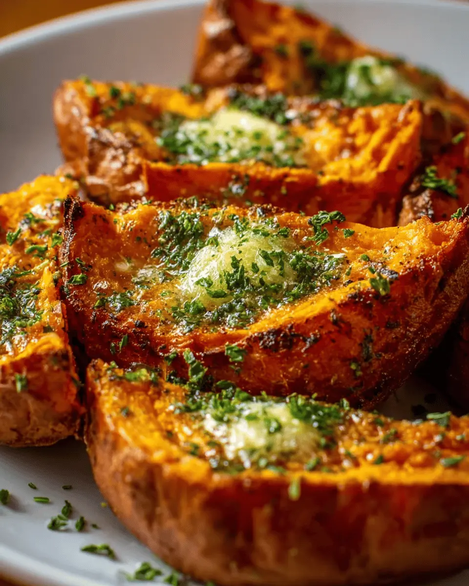 A delectable recipe for air fried sweet potatoes topped with a flavorful magic butter that elevates the dish to new heights!