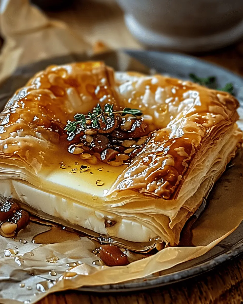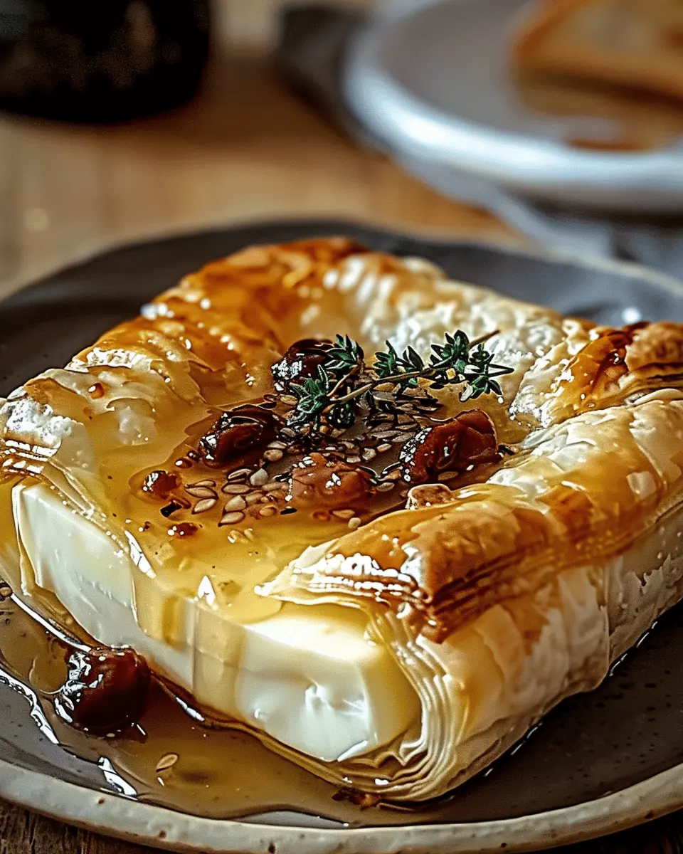 A delightful combination of creamy brie, sweet honey, and figs, all wrapped in crispy puff pastry.