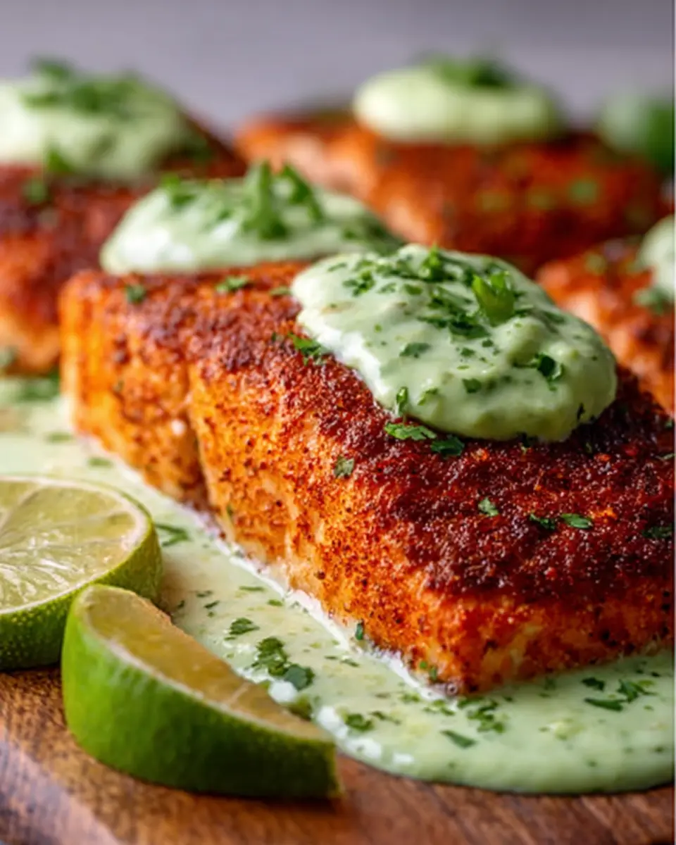 Baked Cajun Salmon: Easy Recipe with Creamy Avocado Lime Sauce
