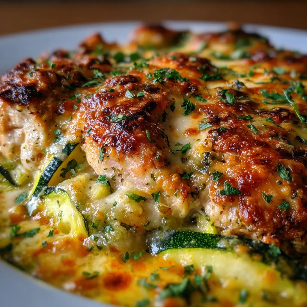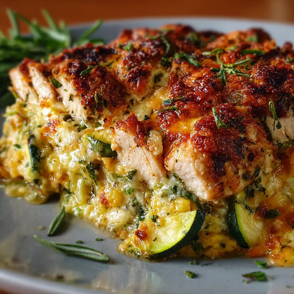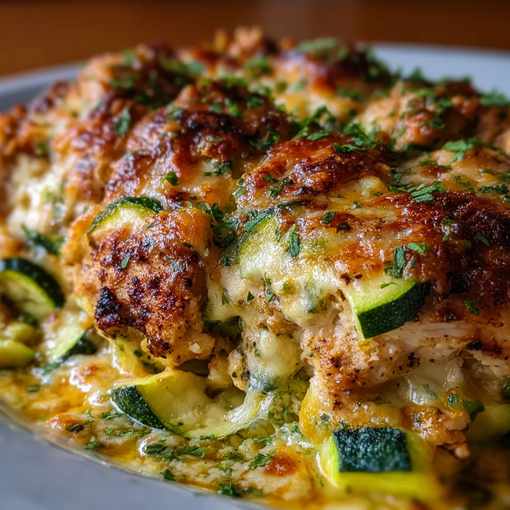 A comforting and delicious casserole perfect for family dinners, featuring tender chicken and zucchini in a cheesy sauce.