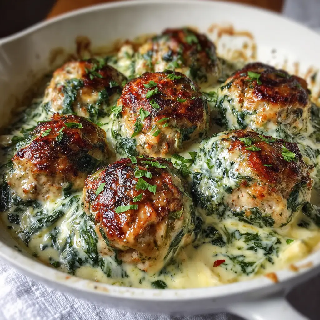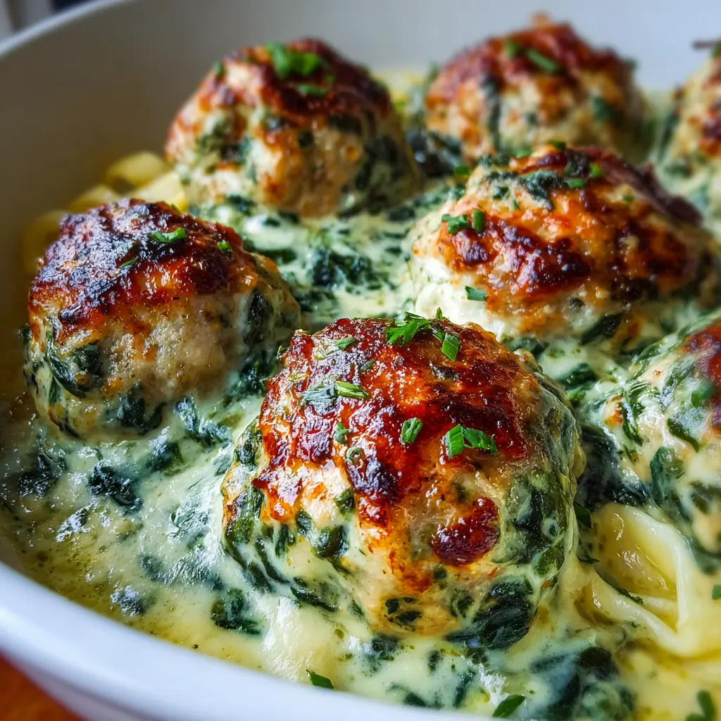 Baked Chicken Ricotta Meatballs: Indulgent Spinach Alfredo Delight