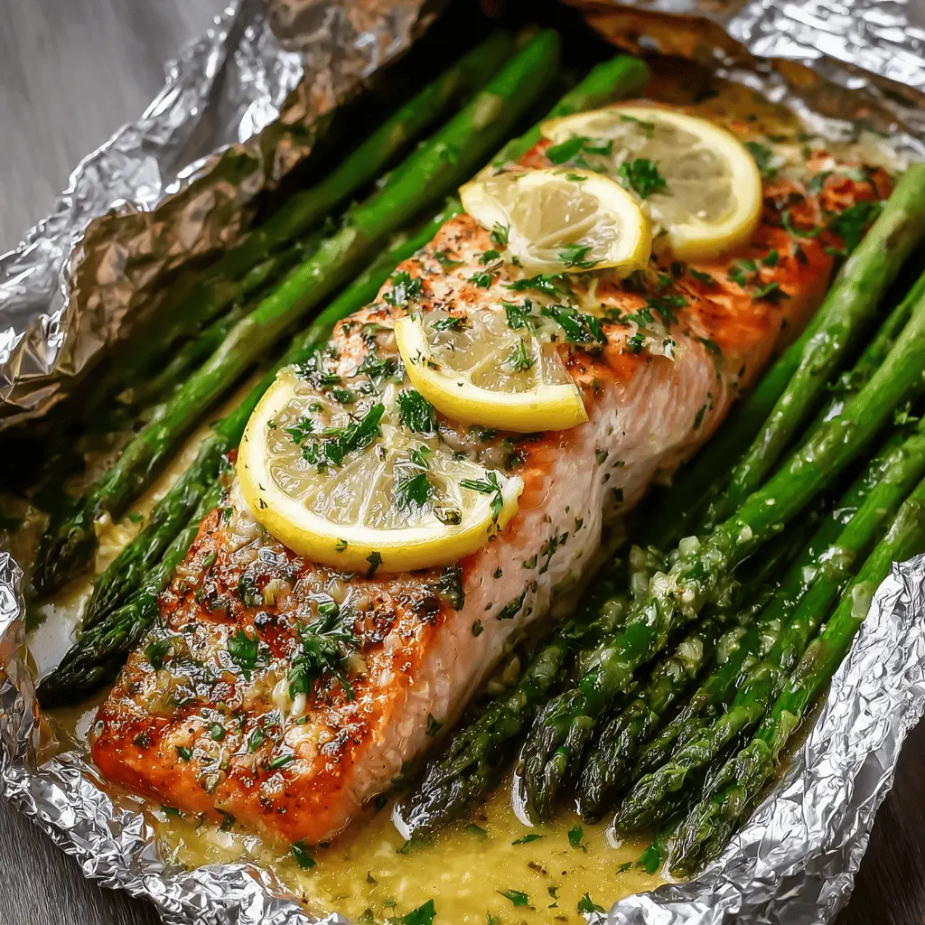 Imagine tender salmon infused with zesty lemon and aromatic garlic, paired beautifully with crisp asparagus—what's not to love? The foil locks in moisture, ensuring your salmon remains juicy and flavorful. Don’t hesitate to experiment by adding your favorite vegetables or swapping in turkey bacon for extra taste.