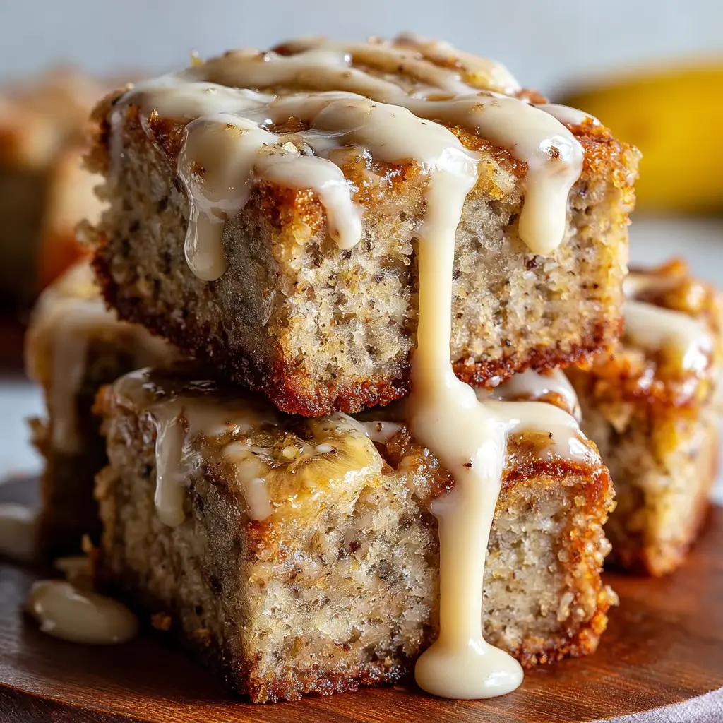 Deliciously moist and flavorful banana bars topped with a rich vanilla and browned butter glaze.