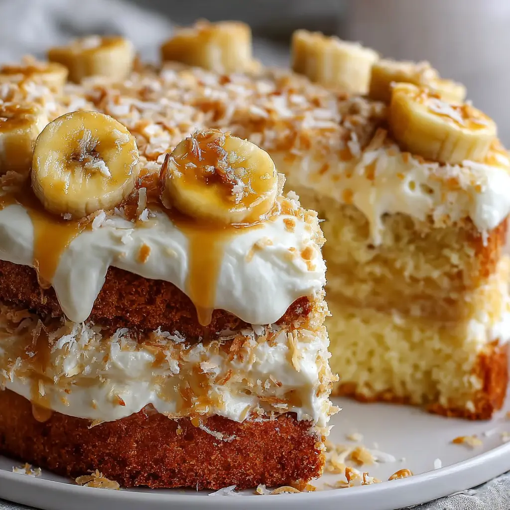 Tropical Banana Pudding Cake with Coconut