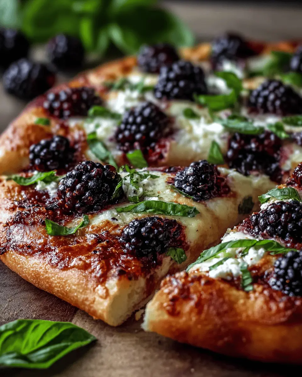 A delightful twist on pizza featuring the fresh flavors of blackberry, basil, and ricotta.