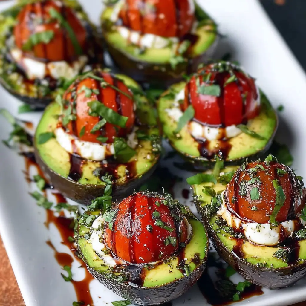 Caprese Stuffed Avocados: Easy Delight with Sweet Balsamic Glaze