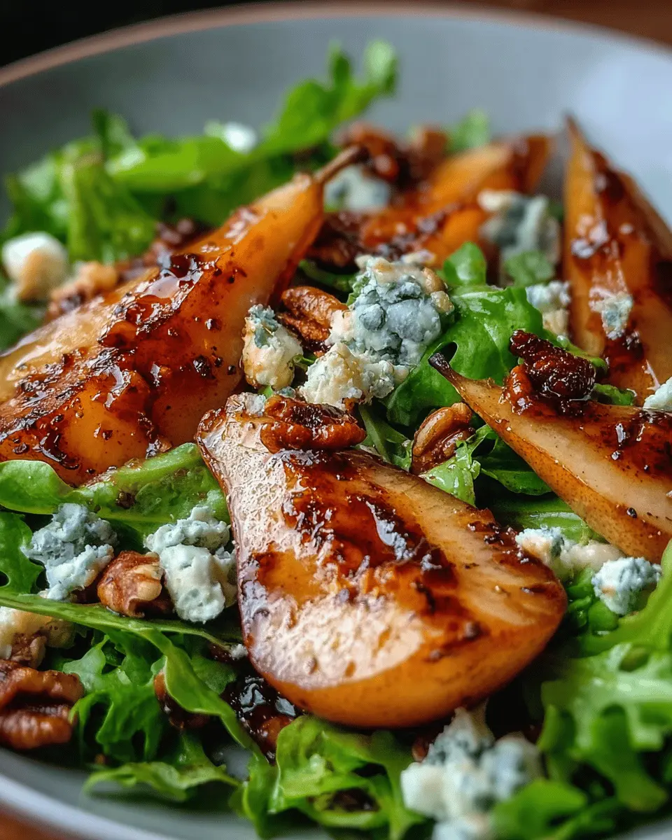 For an extra layer of flavor, try incorporating nuts like walnuts or pecans. Toast these nuts lightly in the pan after your pears are done. Their crunch complements the creaminess of blue cheese beautifully and adds that satisfying texture we all crave. You could even drizzle a little honey over the top just before serving, giving a sweet finish that balances the savory notes of your salad. Got a special occasion coming up? Serve it warm with a simple balsamic reduction to impress your guests!