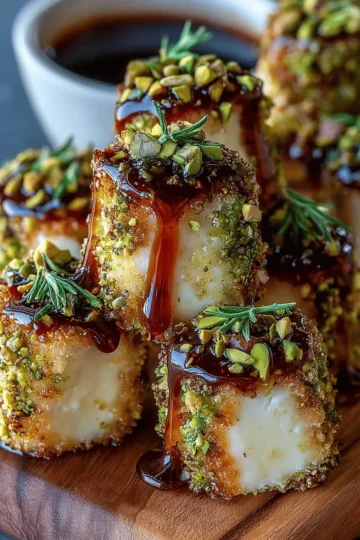 Pistachio Crusted Brie Bites: Indulgent Treat with Fig Honey Glaze