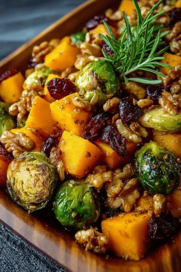 Roasted Brussels Sprouts: Delightful Butternut Squash with Maple Walnuts & Cranberries