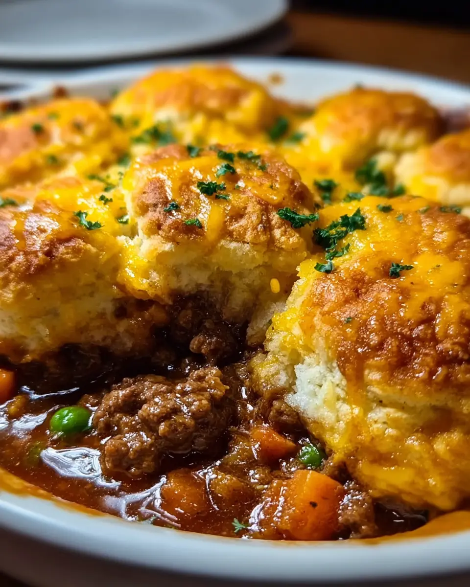 Experience the ultimate comfort food with this delicious Cheddar Bay Ground Beef Cobbler, perfect for any family gathering or cozy night in.