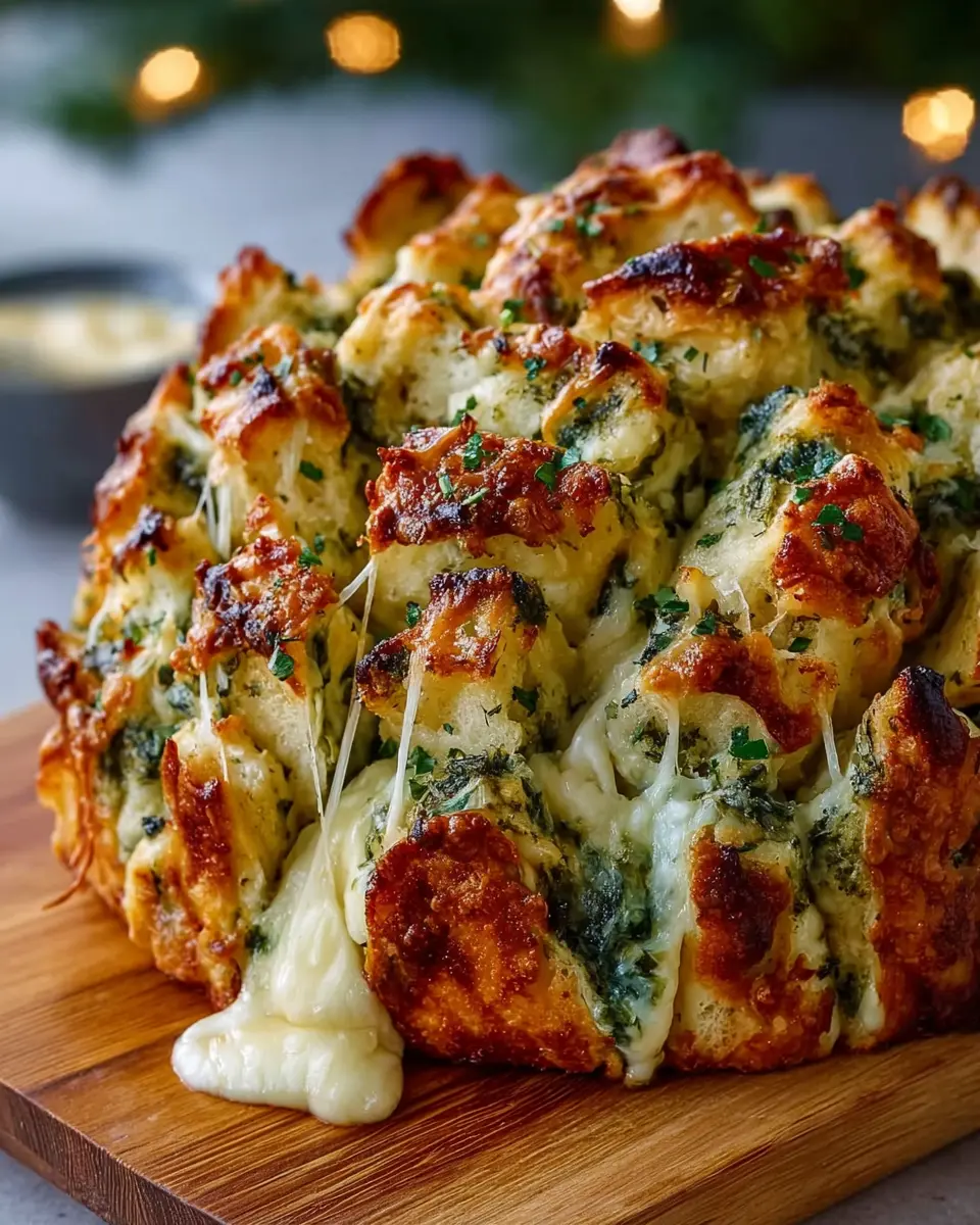 Easy to Make and Share: Preparing this dish is a breeze. With just a few steps, you’ll have a pull-apart masterpiece that encourages interaction among guests. Everyone loves digging in and tearing away a piece—a perfect icebreaker for holiday parties.