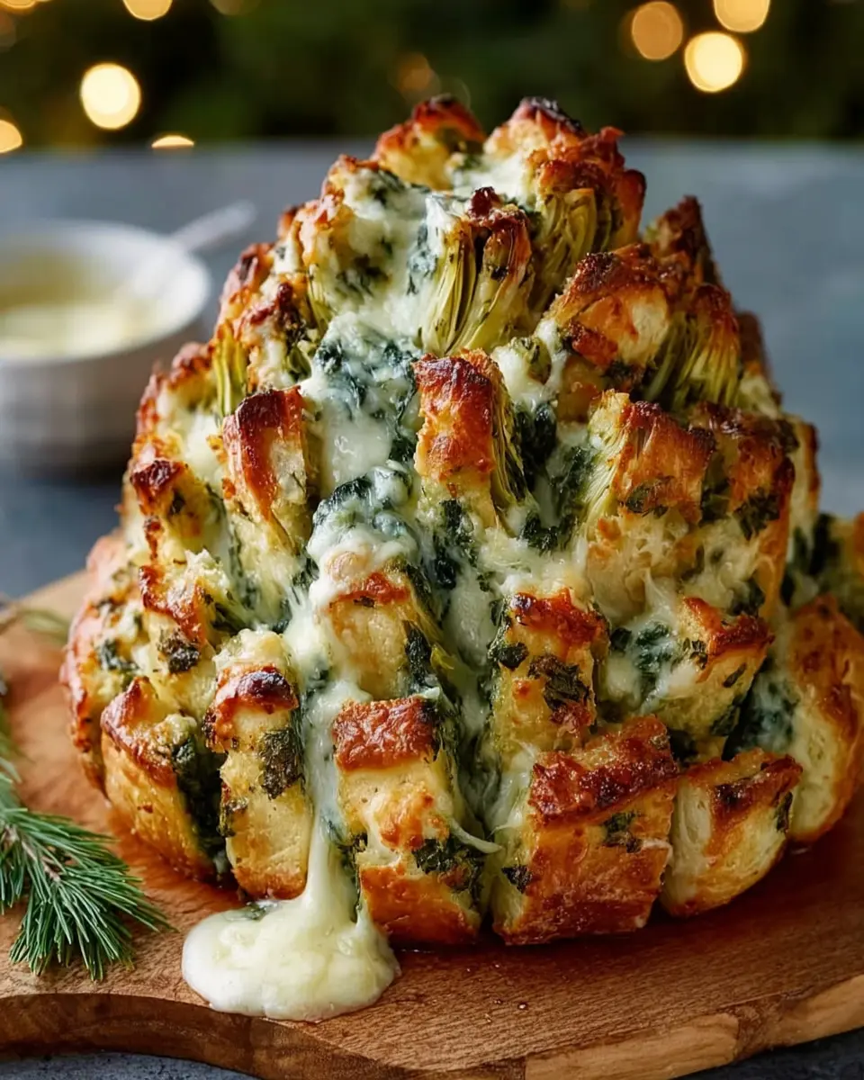 Cheesy Artichoke & Spinach Christmas Tree Pull-Apart Delight