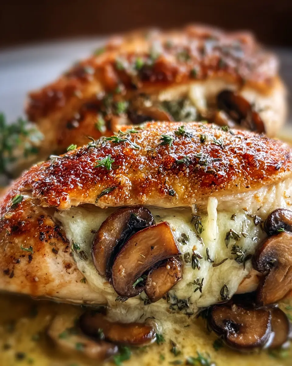 Cheesy Garlic Butter Mushroom Stuffed Chicken for a Cozy Dinner