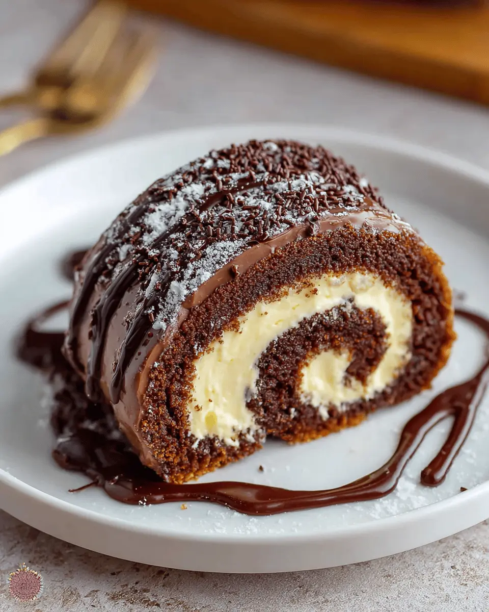 Indulge in a delicious chocolate cake roll that is easy to make and perfect for any occasion!