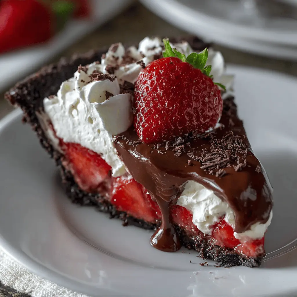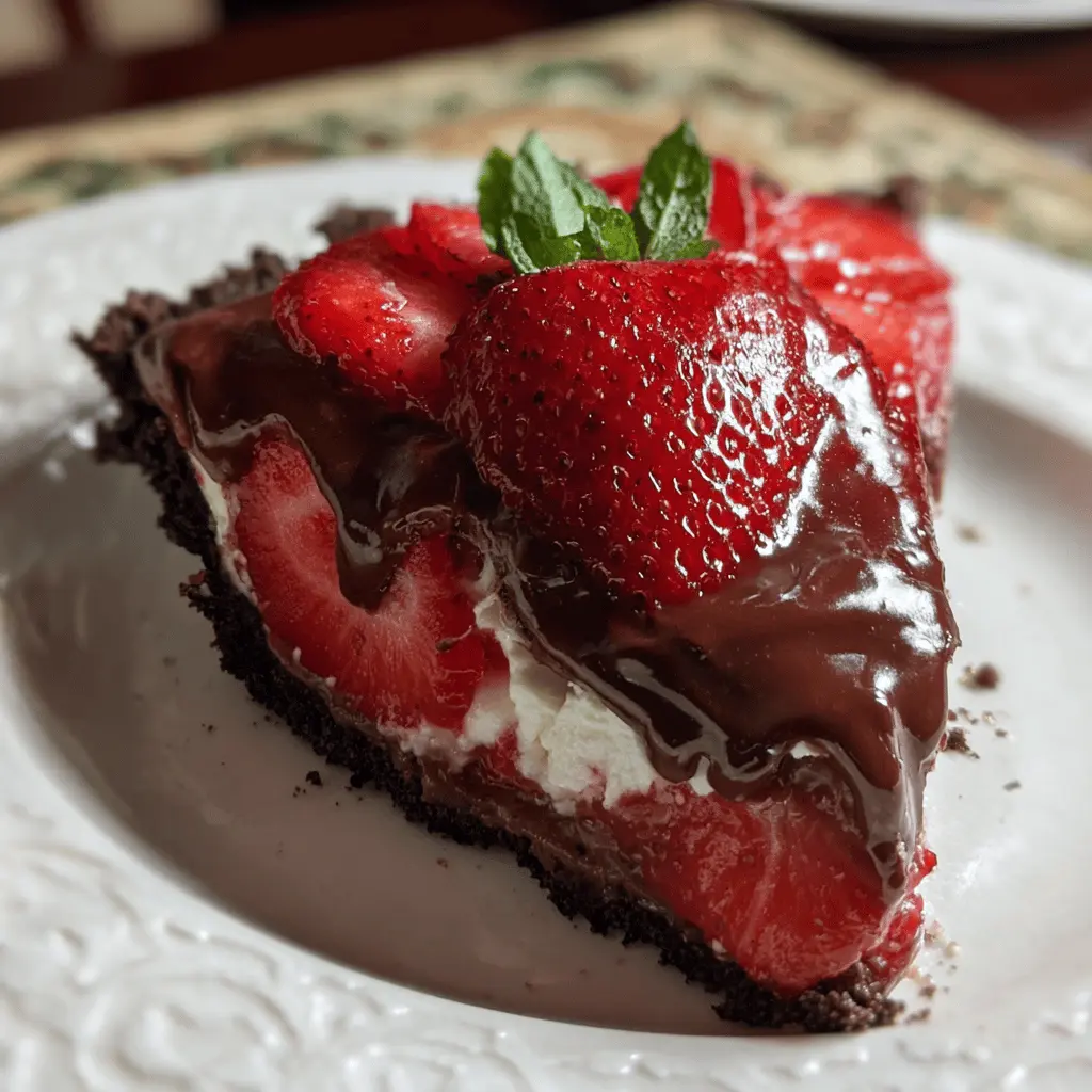 Indulge in the rich and creamy flavors of Chocolate Covered Strawberry Pie, perfect for any celebration or as a delightful treat.