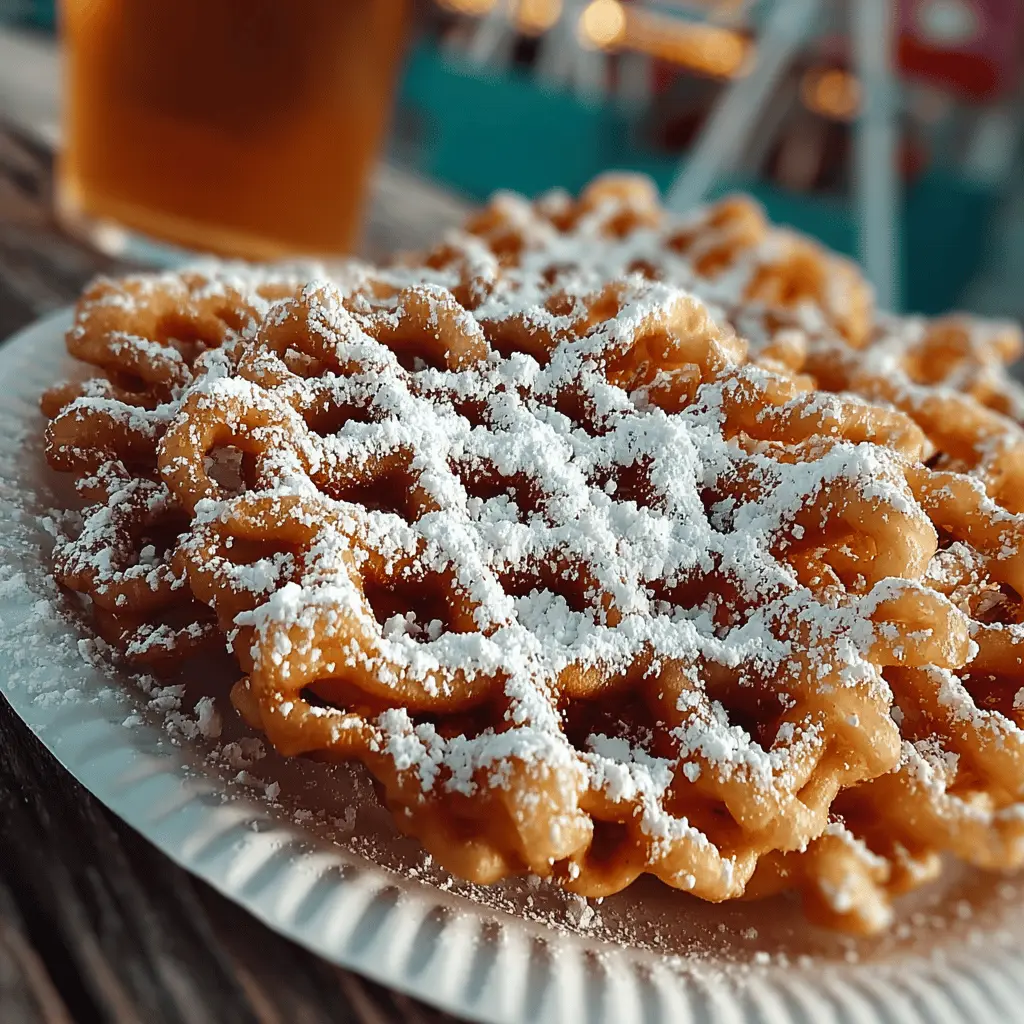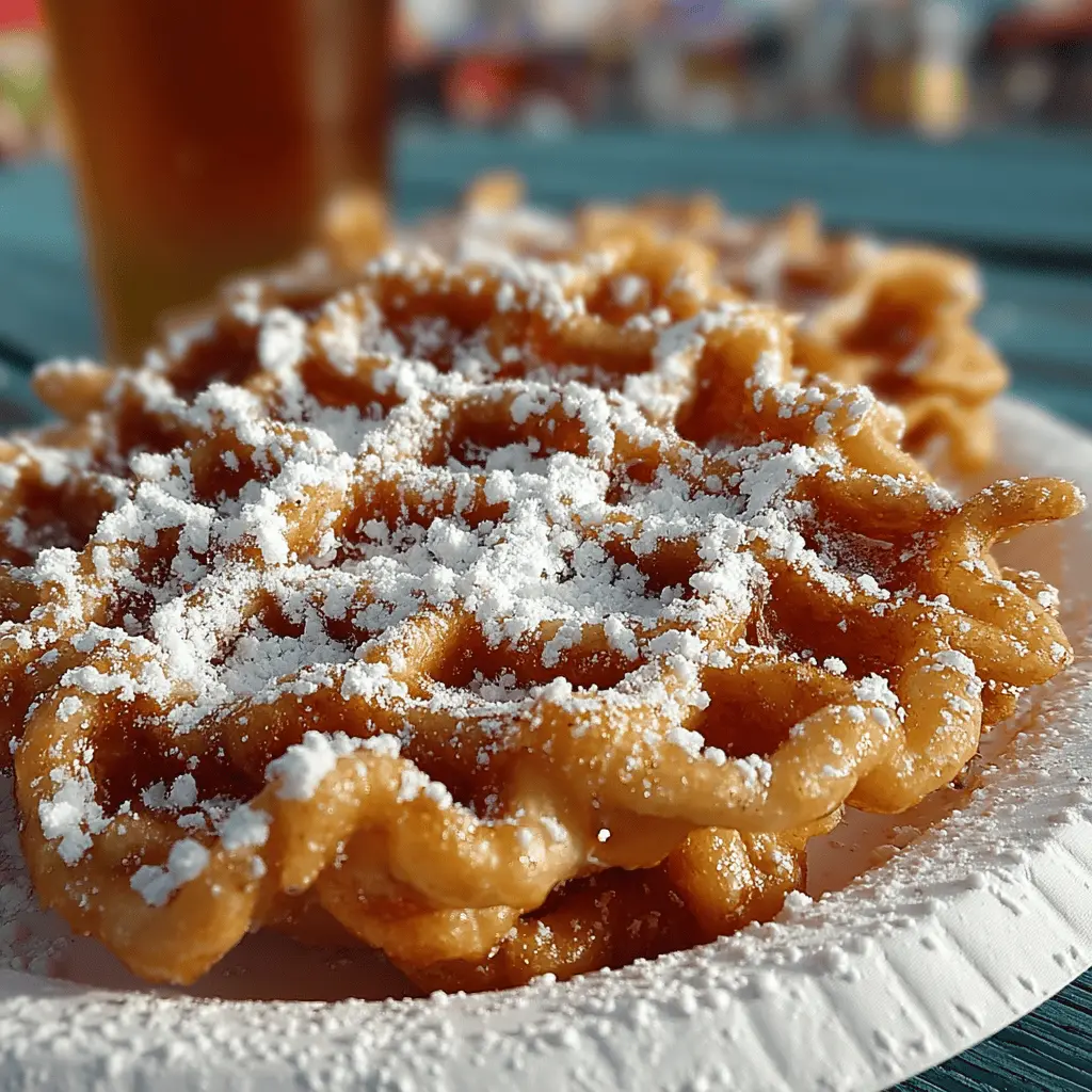 Once the oil is hot, it’s time to fry! Using a funnel (or a squeeze bottle if you have one), drizzle the batter in a circular motion over the hot oil. You can create a beautiful spiral pattern; the key is to be flexible and playful—after all, that’s how fair food got its charm! Fry for about 1-2 minutes per side or until you see that glorious golden-brown color.