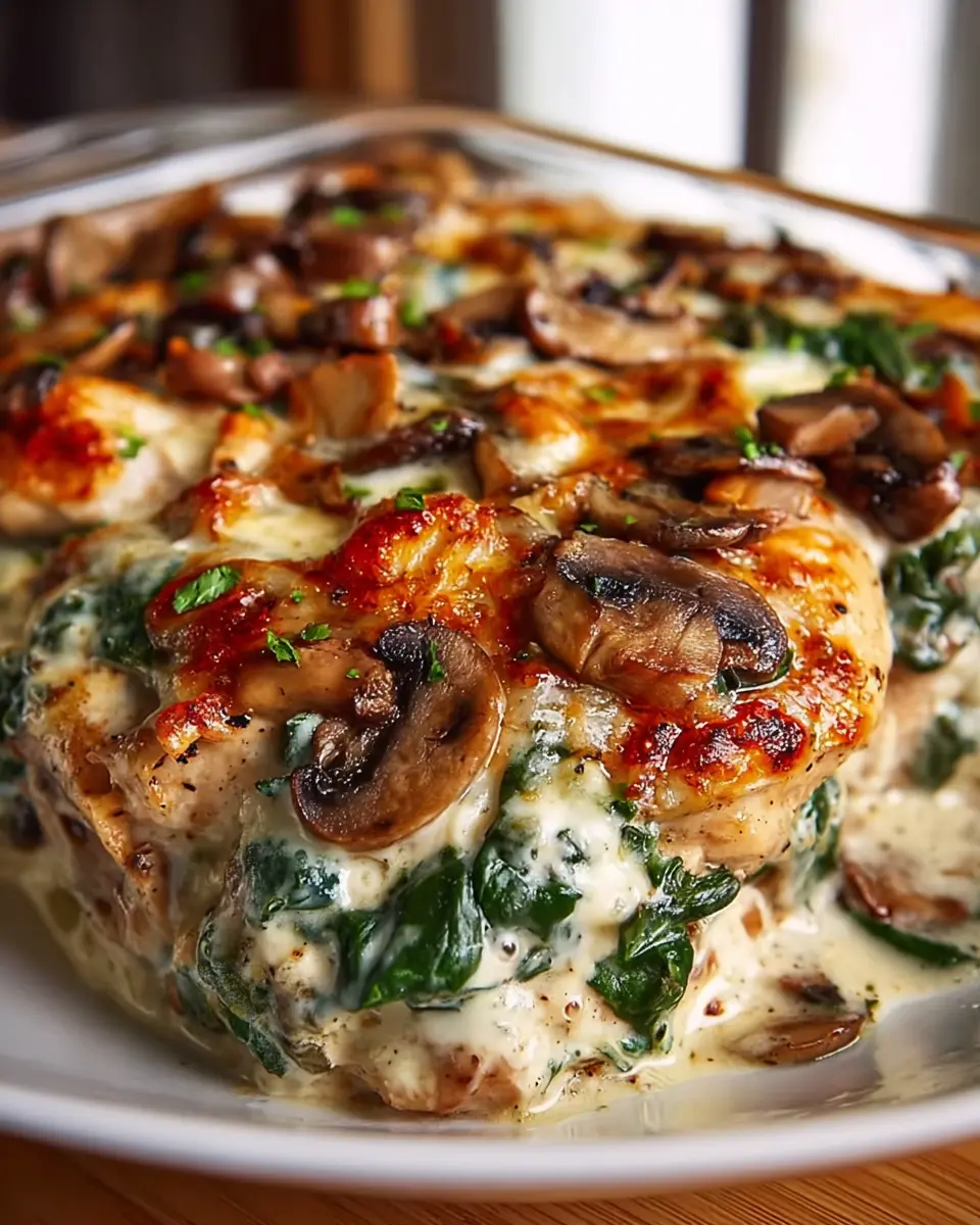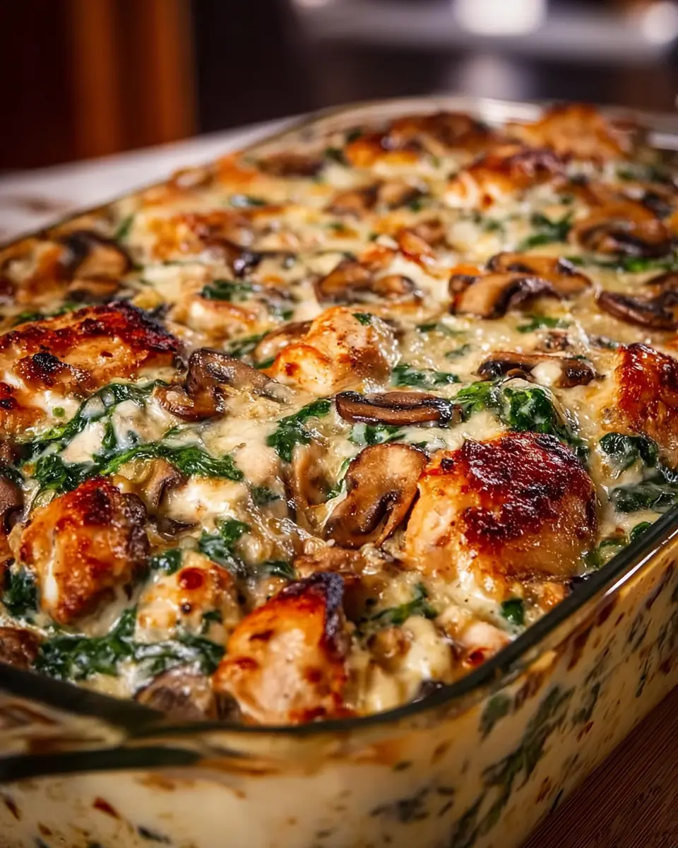 Cowboy Creamy Chicken Spinach and Mushroom Bake: Easy and Cozy Meal