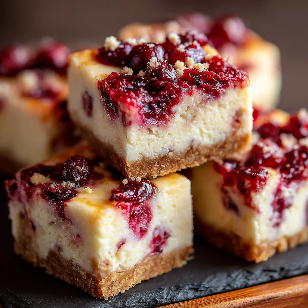 These Cranberry Cheesecake Bars are a deliciously creamy treat that combines the tartness of cranberries with a rich cheesecake base, perfect for any occasion.