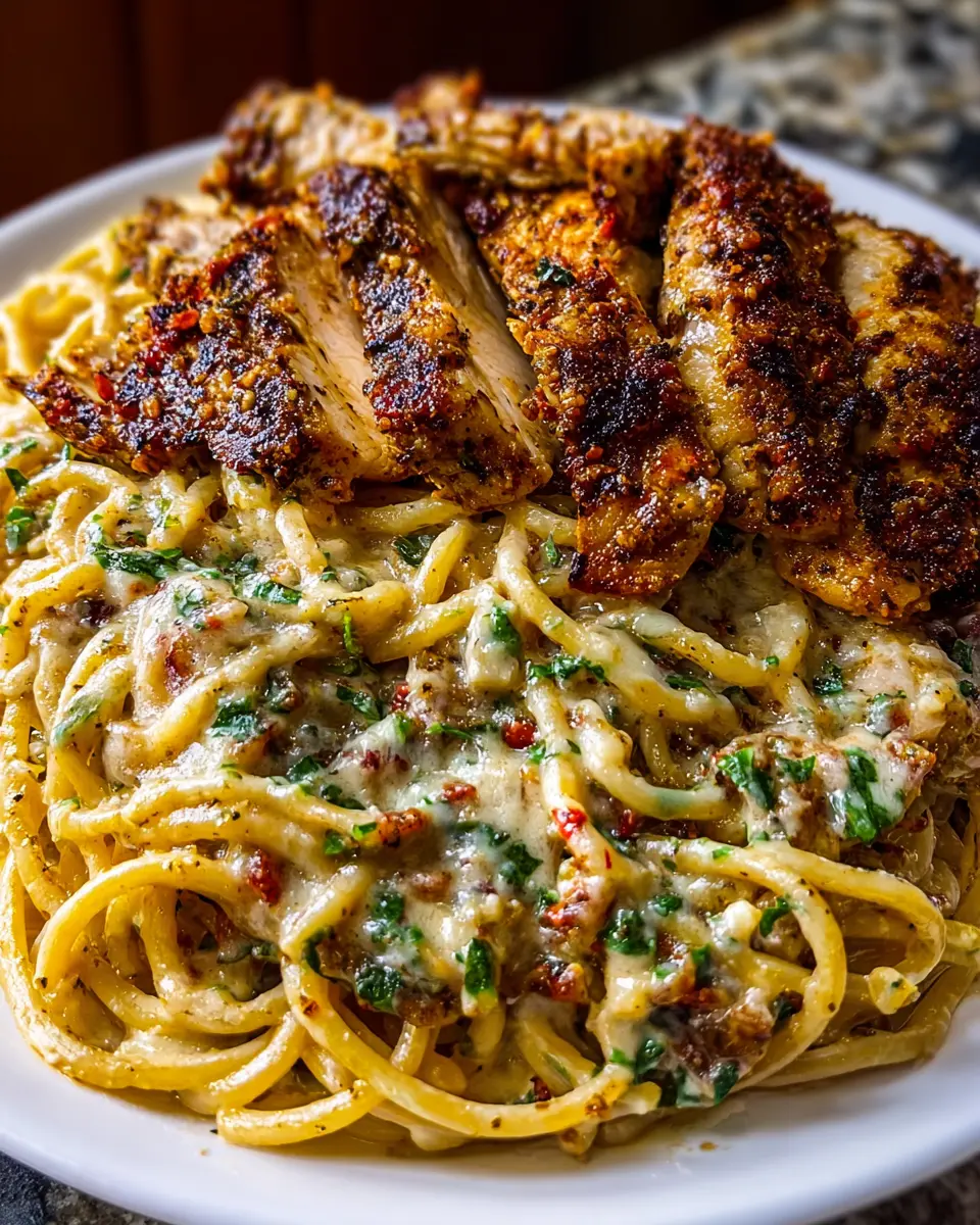 Elevate your creamy Cajun garlic chicken spaghetti presentation with a few garnishing tricks! Fresh herbs like parsley or basil sprinkle a touch of green and add freshness. For a bit of heat, consider a sprinkle of Cajun seasoning on top that mirrors the flavors in the dish.