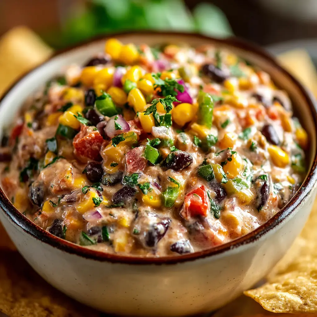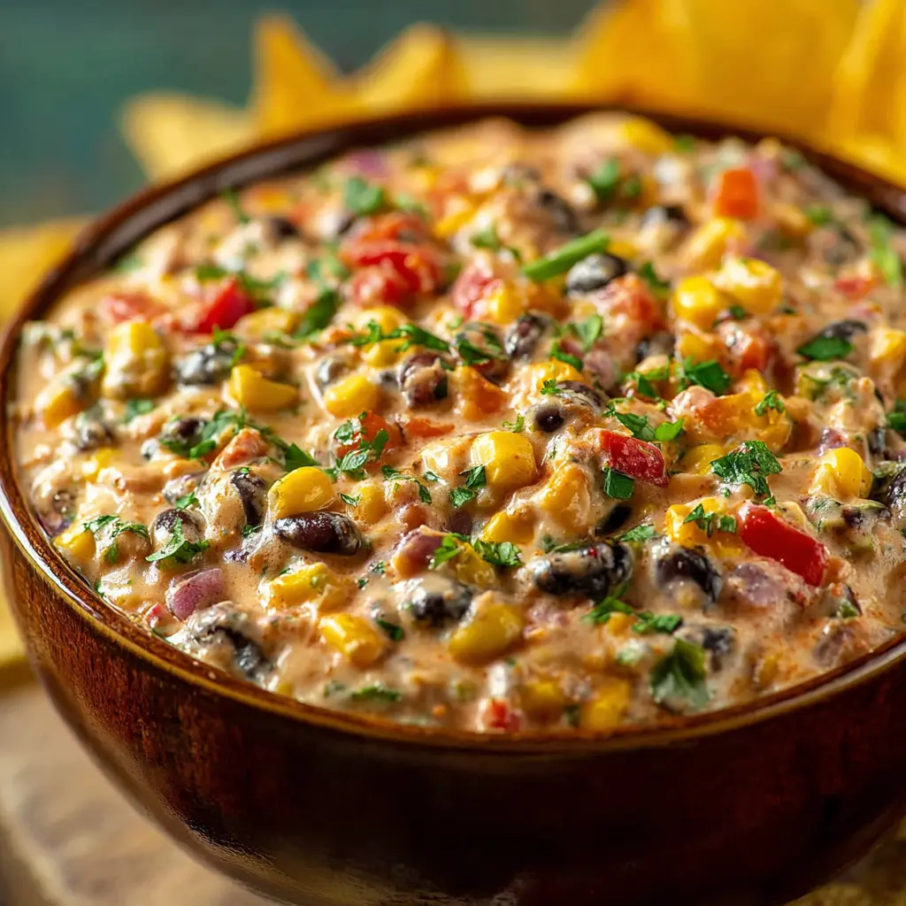 A delicious blend of beans, corn, and turkey bacon creates this flavorful creamy dip, perfect for parties or as a snack.
