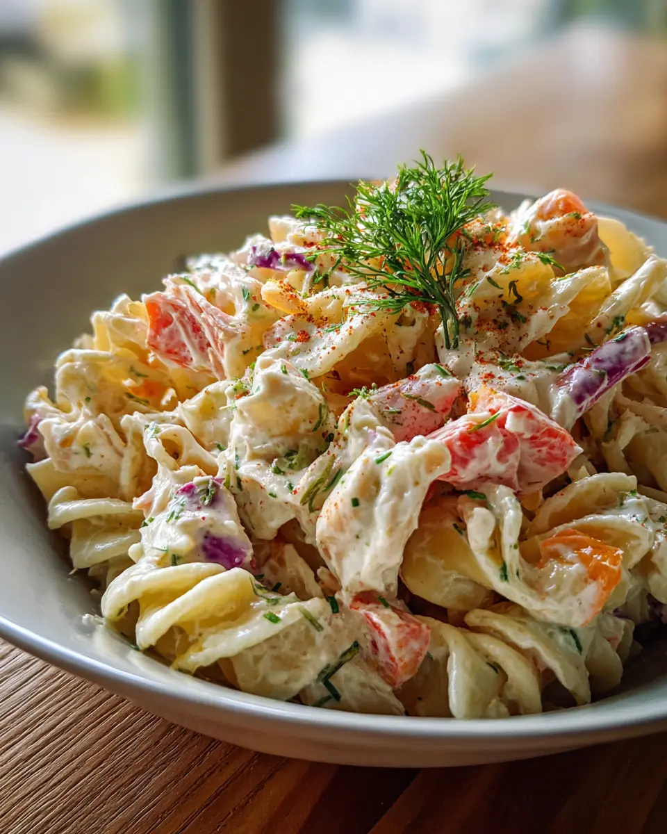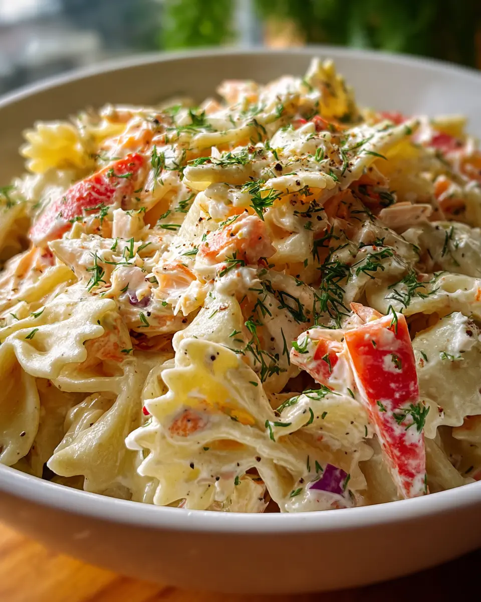 Impressive Presentation: Let's be real—first impressions count. A beautifully arranged creamy crab pasta salad looks stunning on any table and is bound to wow your guests. Serve it in a large bowl, or portion it into individual servings for a more elegant touch.
