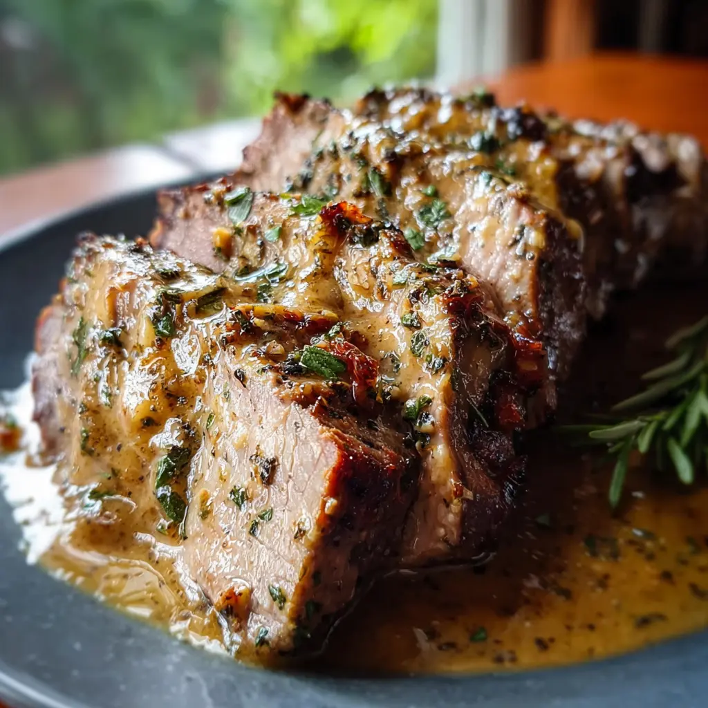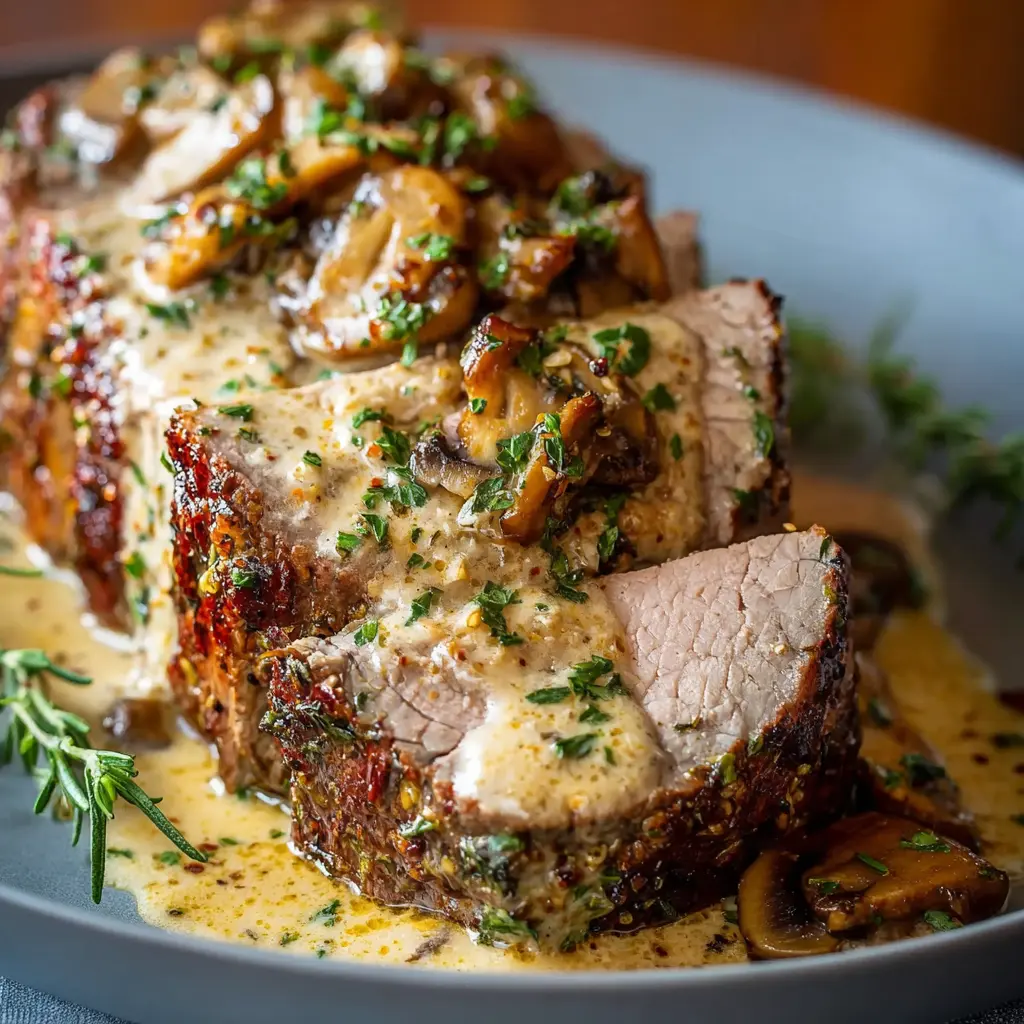 Now you're ready to serve your incredible creamy garlic beef loin! Consider serving it with a side of mashed potatoes or steamed vegetables for a complete meal.