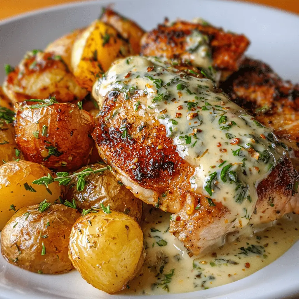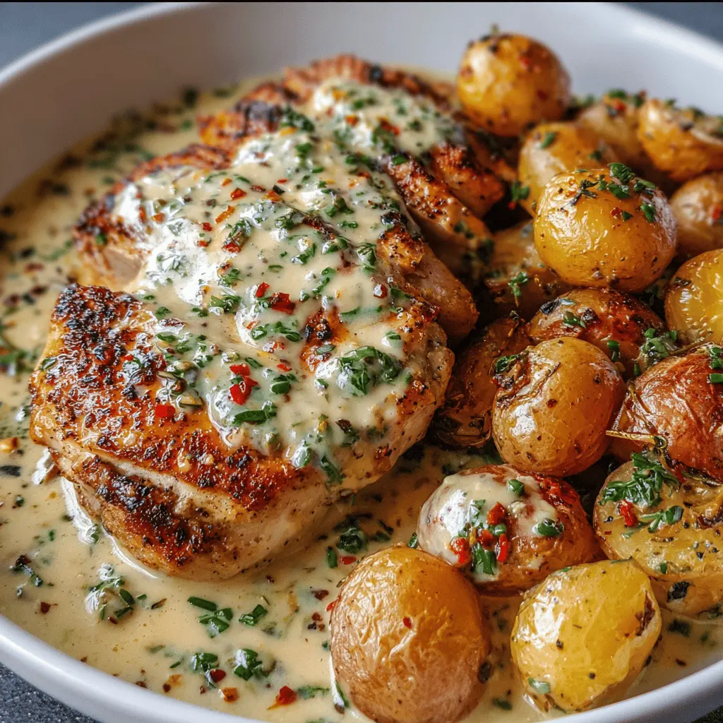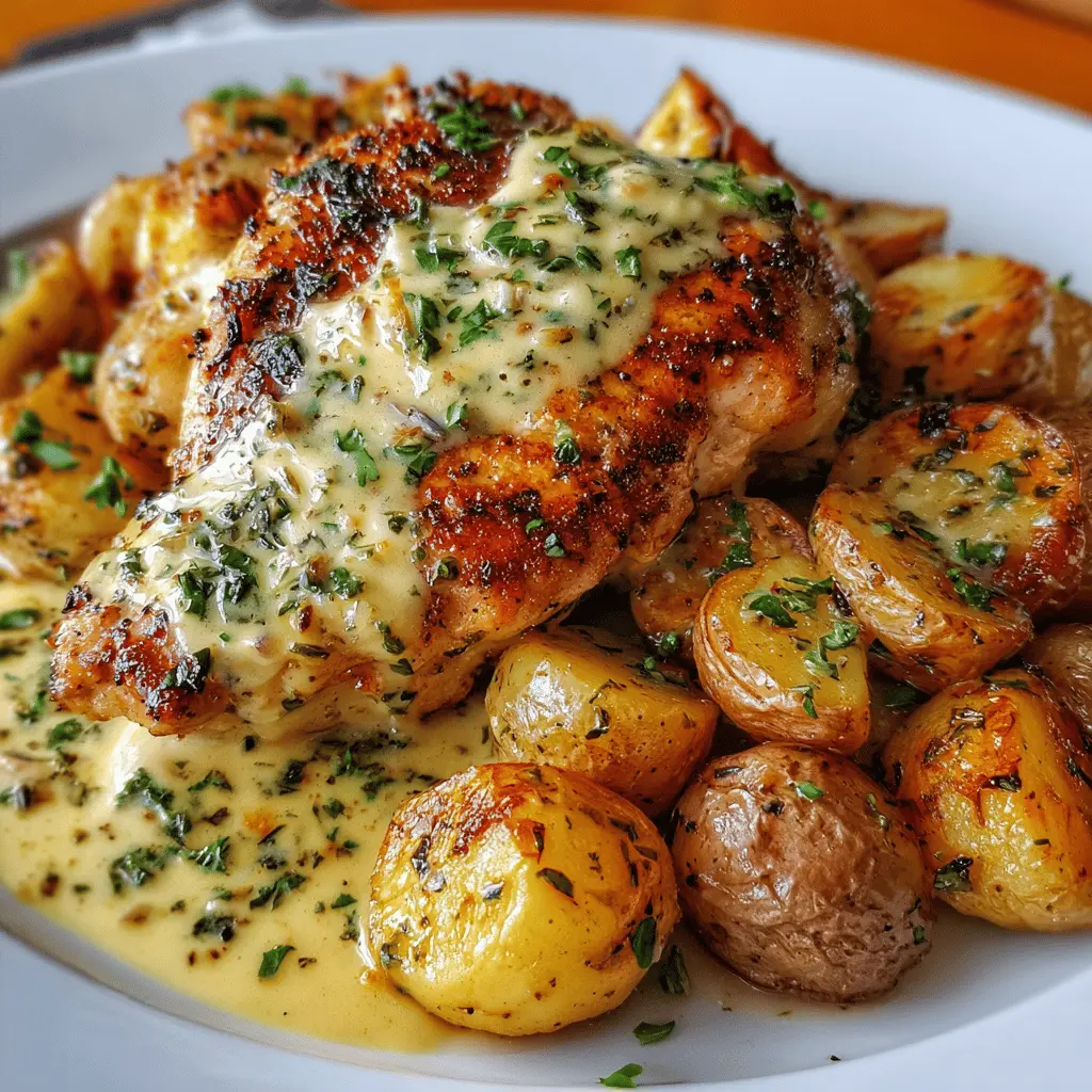 Creamy Garlic Chicken: The Best Comfort Recipe with Roasted Baby Potatoes