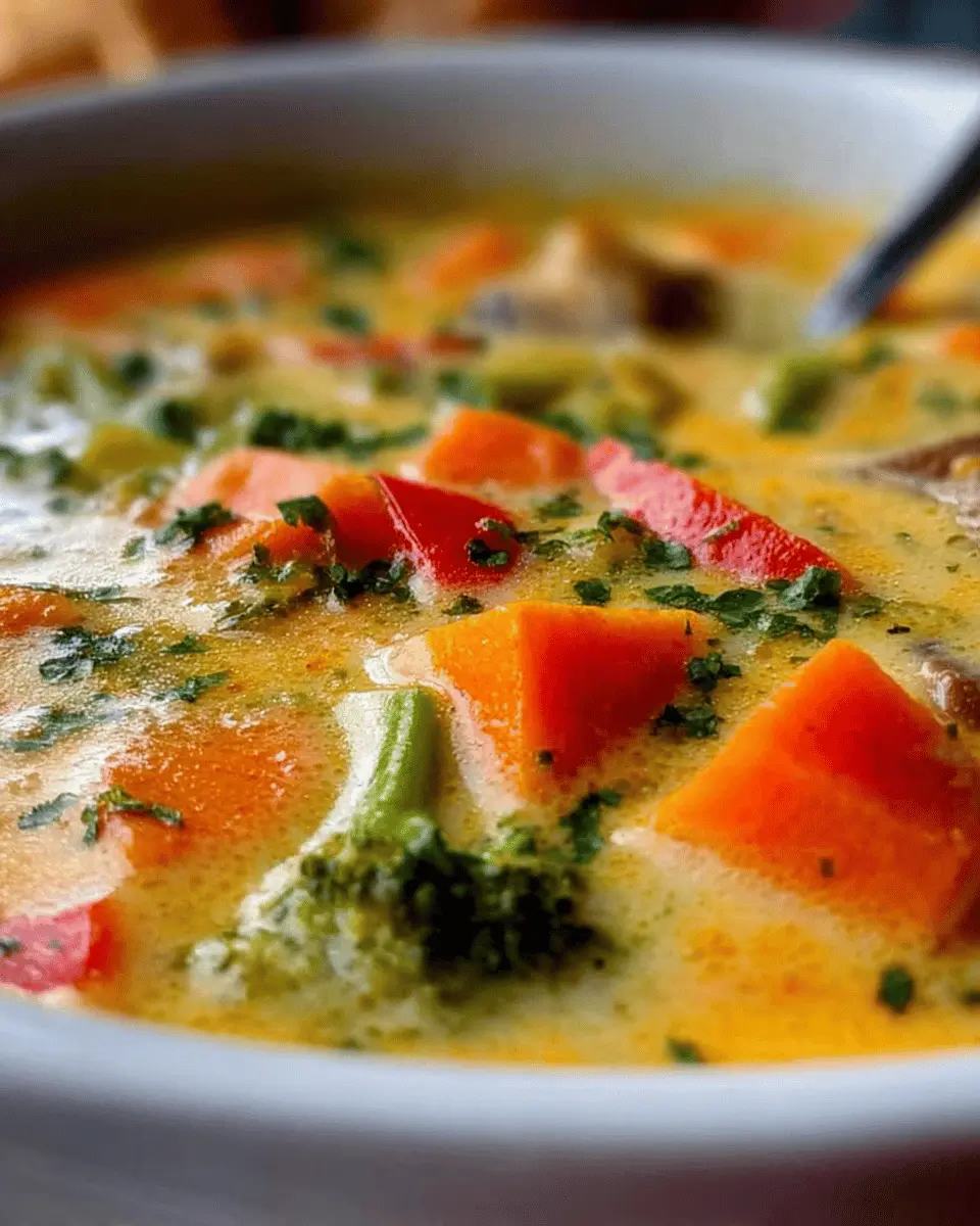 A warm and creamy vegetable soup that is perfect for cozy nights, packed with nutritious ingredients.
