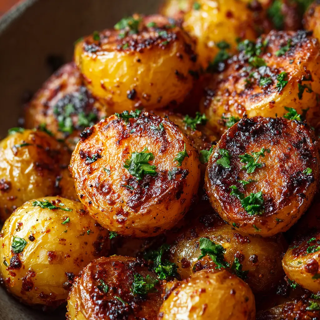 A delicious and easy recipe for crispy mustard roasted baby potatoes, perfect as a side dish for any meal.
