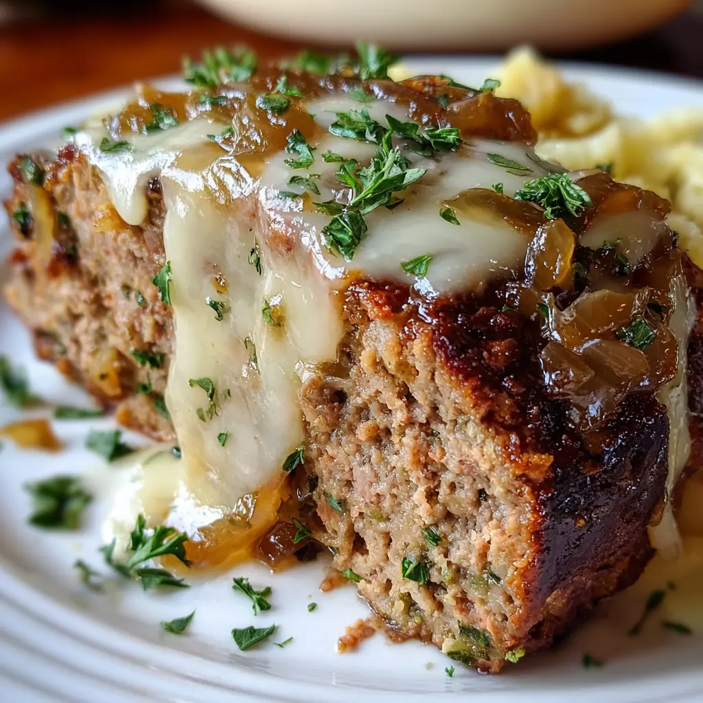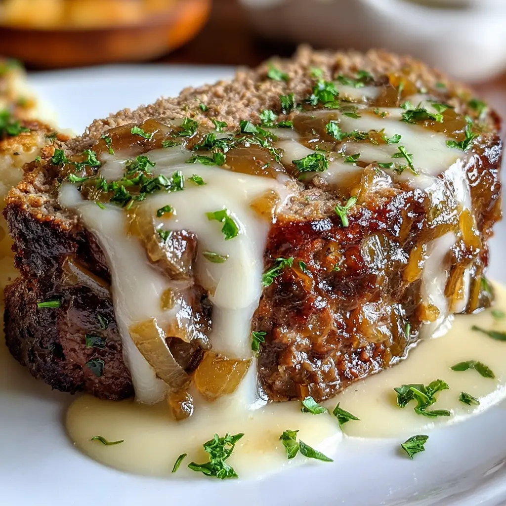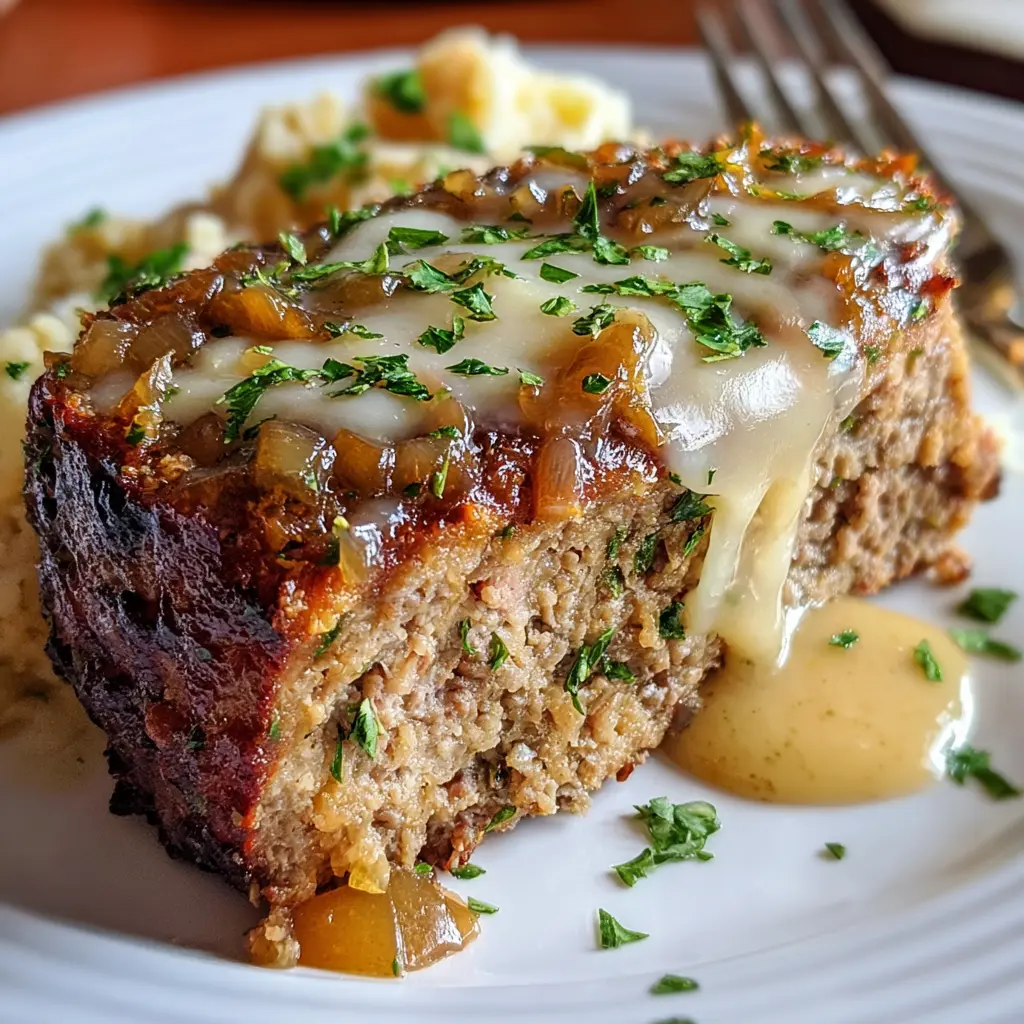 Crockpot French Onion Meatloaf with Melted Swiss Cheese Delight