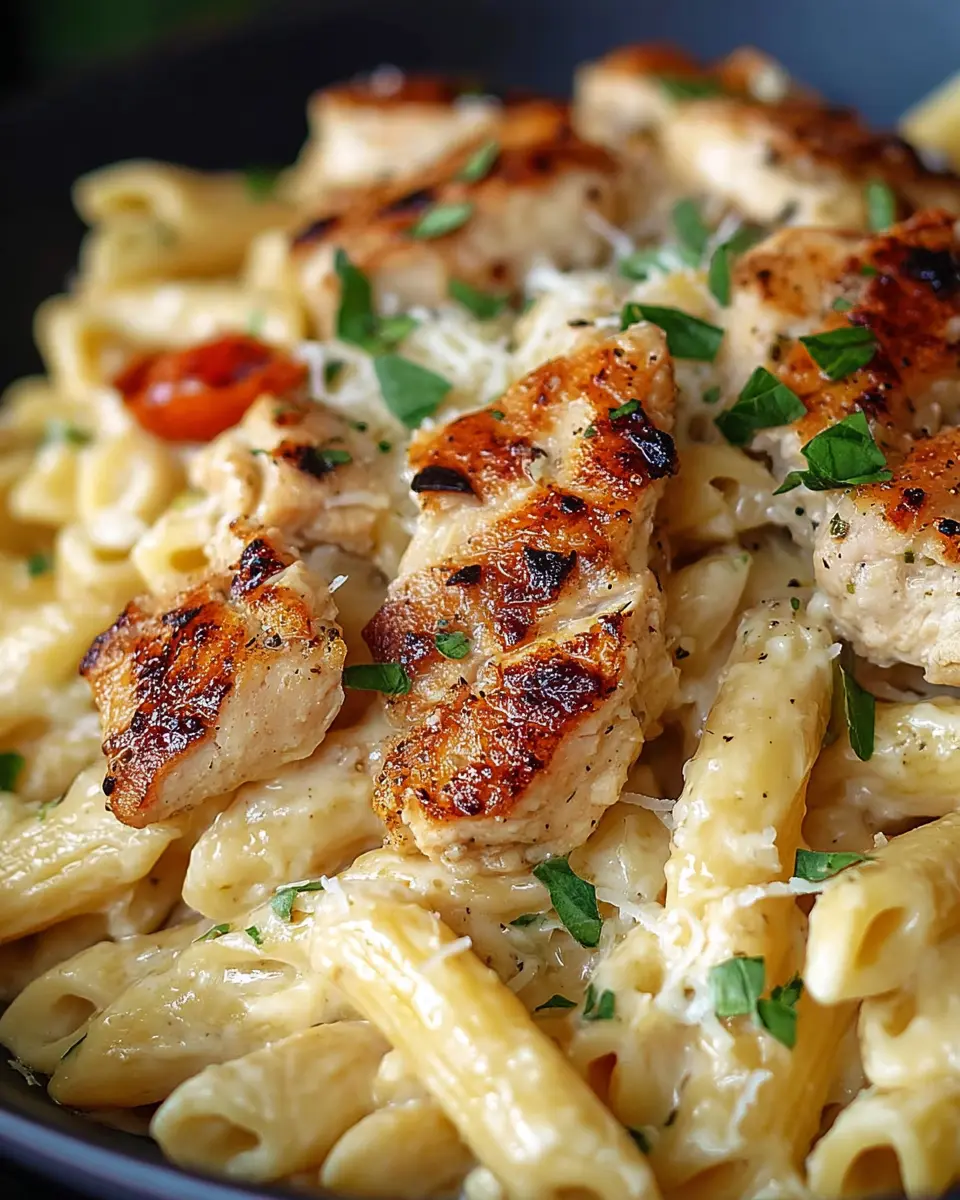 A comforting and delicious crockpot meal featuring tender chicken and pasta in a creamy garlic parmesan sauce.