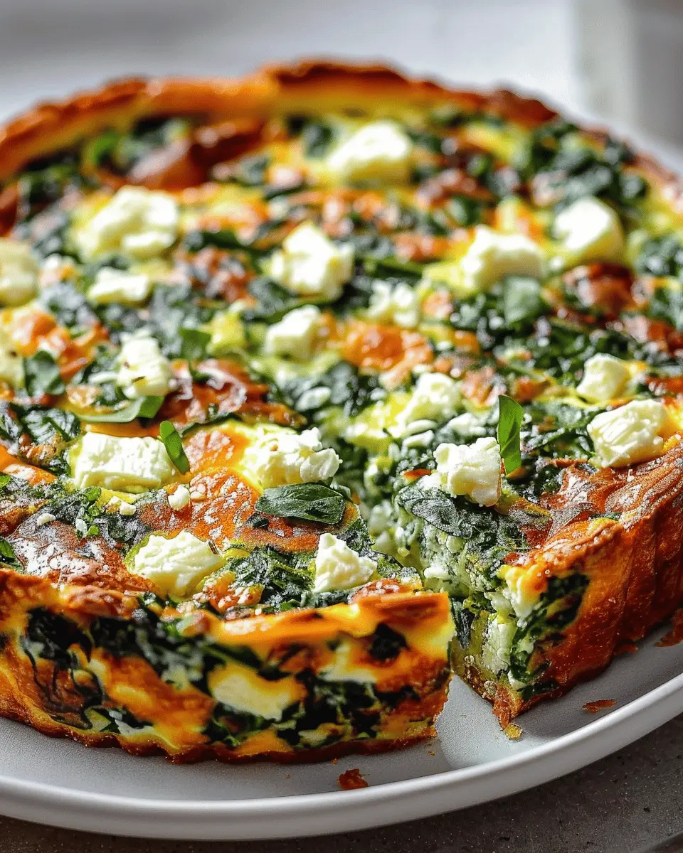 PrintCrustless Spinach and Feta Quiche: Easy Comfort Food Delight