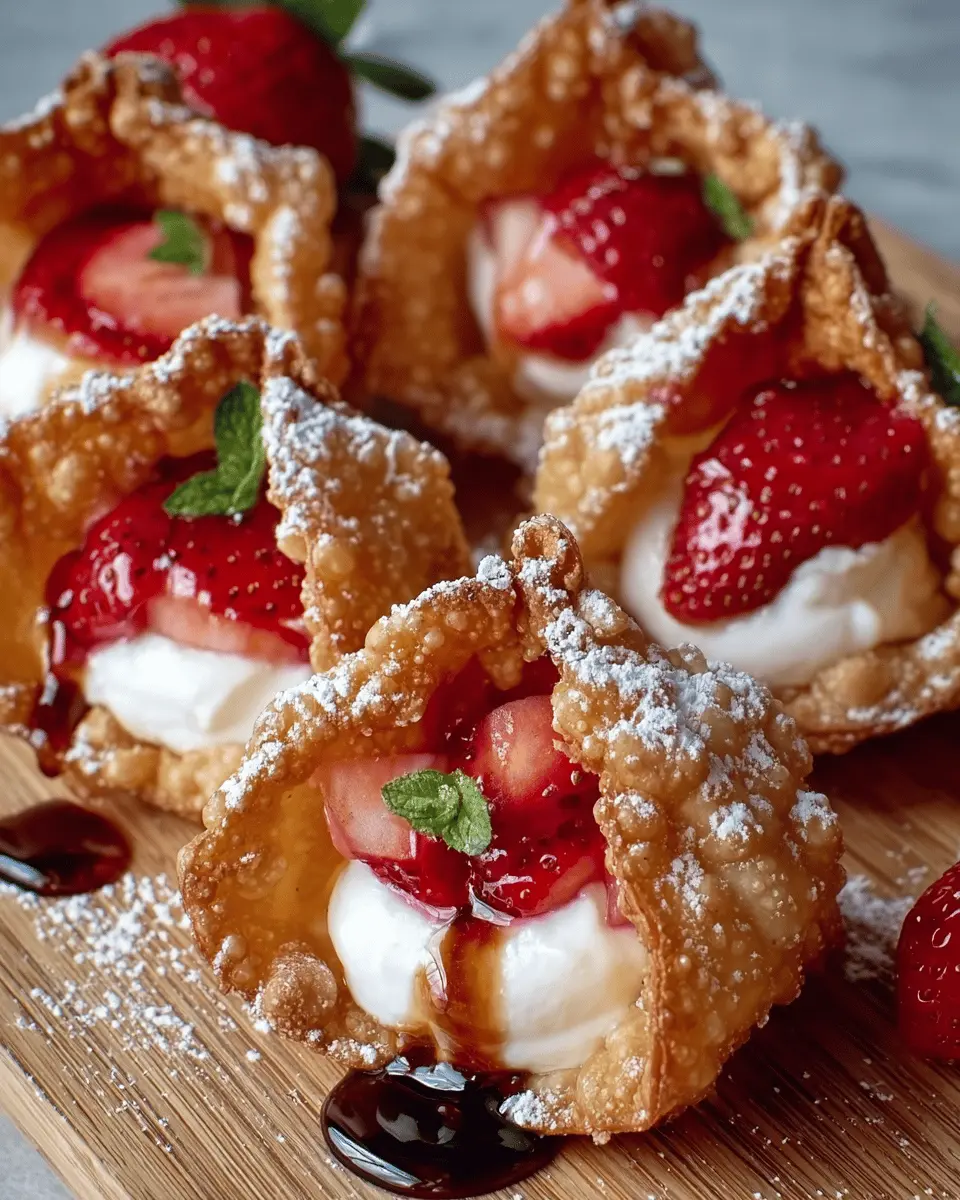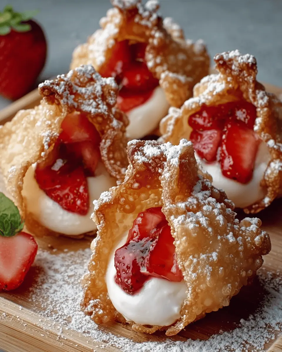 In closing, deep-fried strawberry cheesecake is a delightful treat that combines the best of both worlds: crispy, golden wontons enveloping rich, creamy cheesecake filled with luscious strawberries. Whether you’re hosting a party or simply craving something sweet, these bites will impress your friends and family alike.