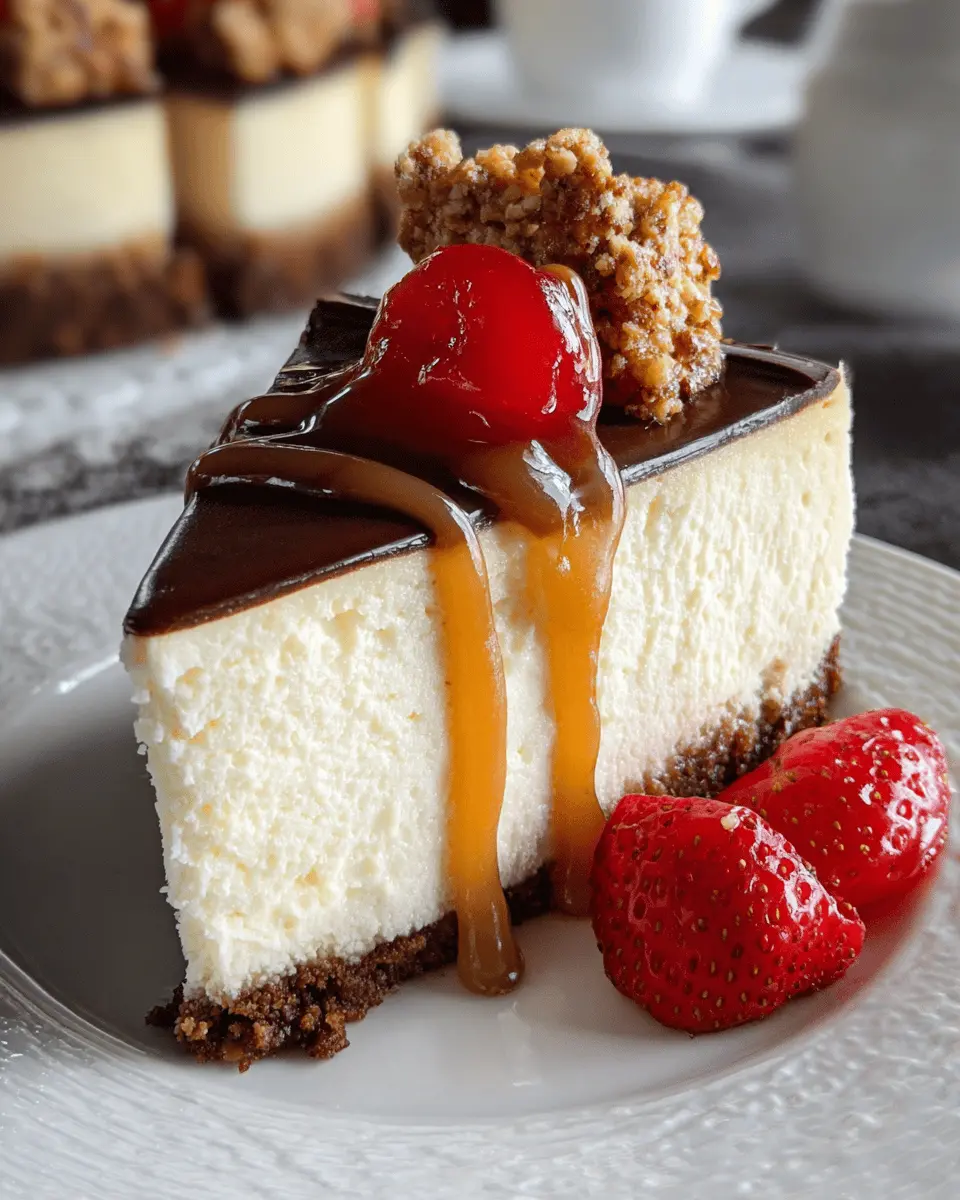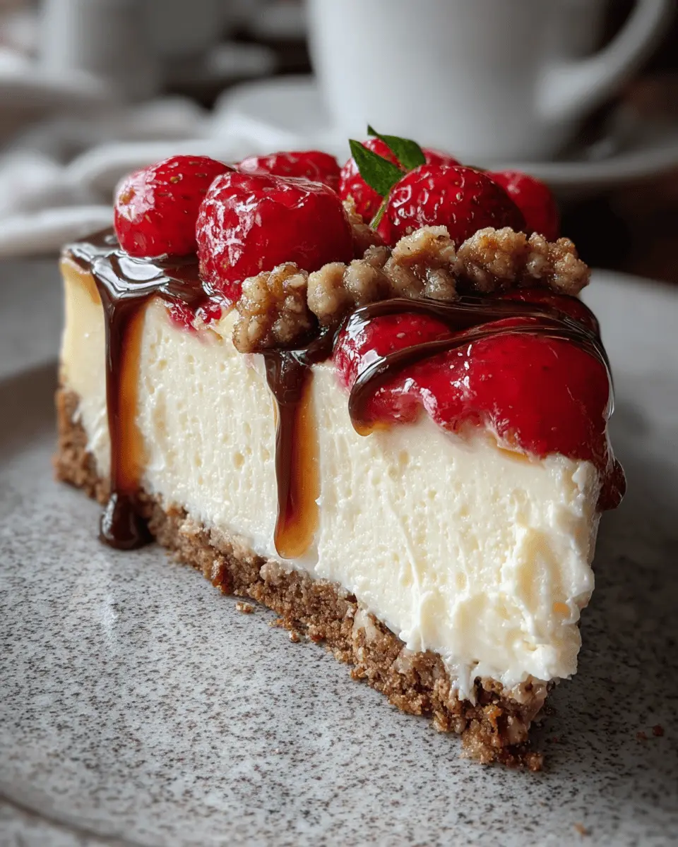 You could also use tropical fruits like sliced mango or pineapple for a refreshing summer vibe. The natural sweetness of the fruit pairs wonderfully with the creamy cheesecake, striking a perfect balance.