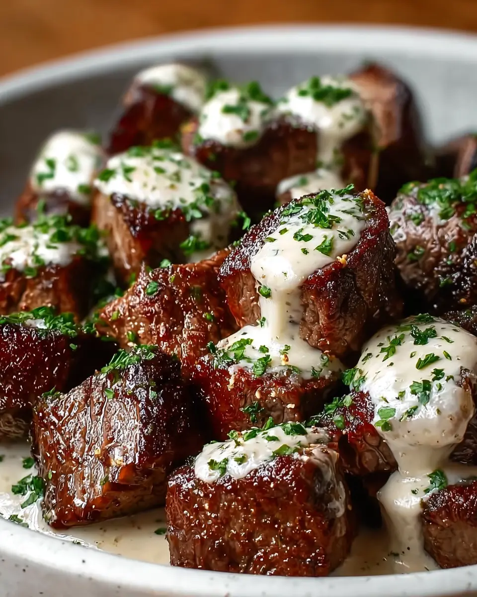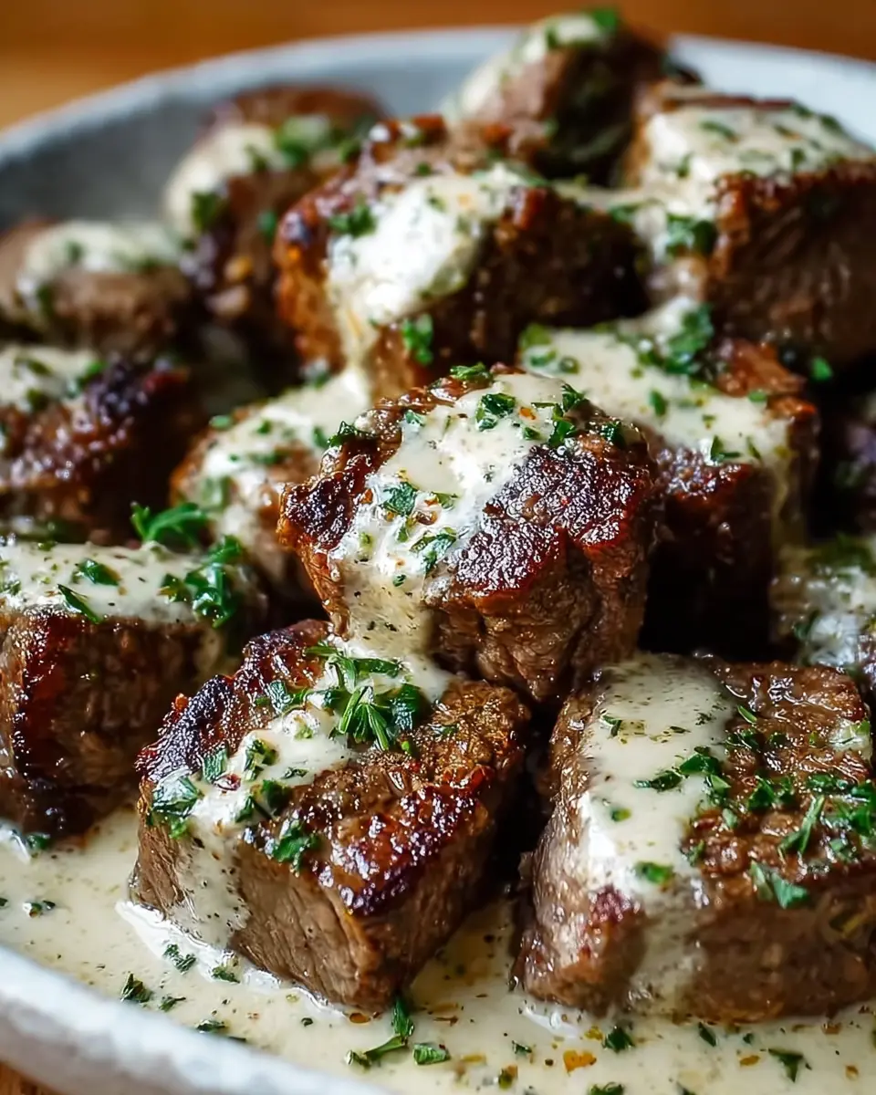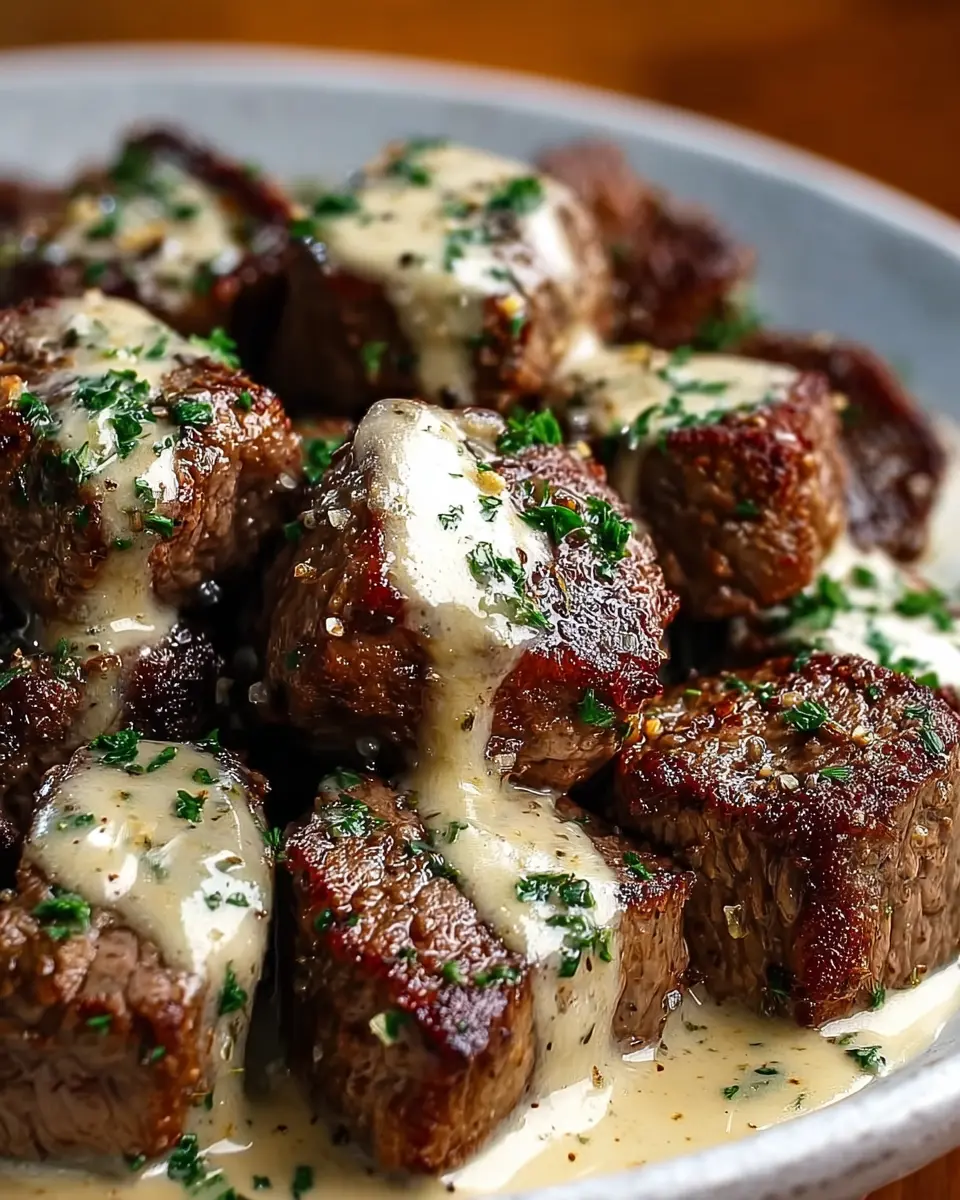 Garlic Butter Beef Bites with Indulgent Parmesan Cream Sauce