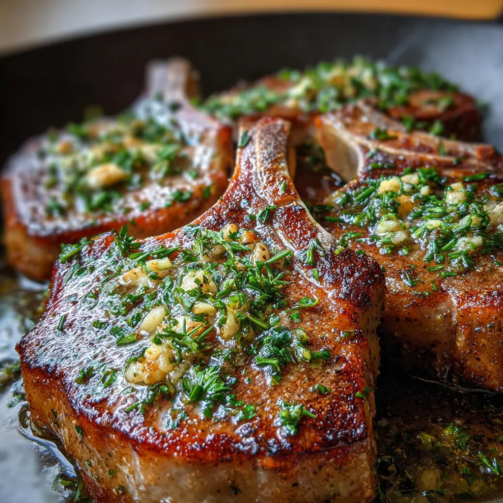 Serve the chops with a drizzle of that savory garlic butter on top, and perhaps accompany them with roasted vegetables or a fresh salad.