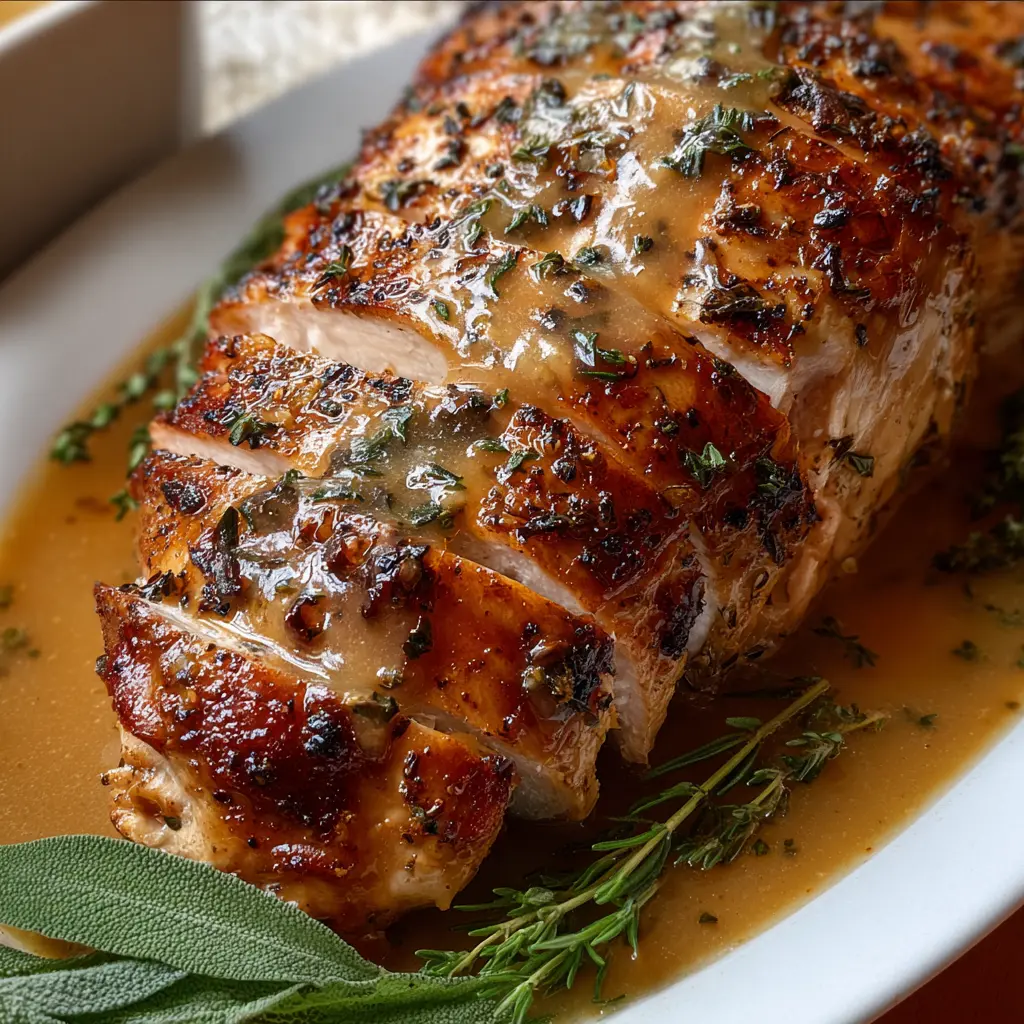 A delicious recipe for Garlic-Herb Roasted Turkey Breast served with a rich pan gravy. Perfect for family gatherings.