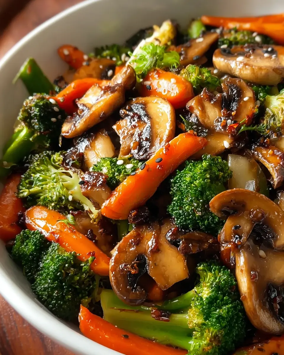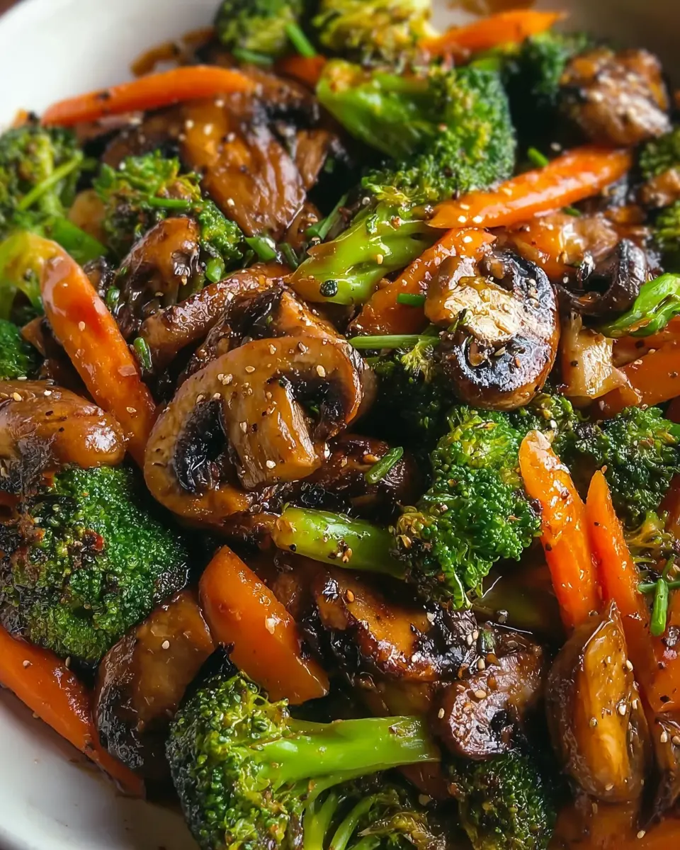 Delicious and quick garlic mushroom and broccoli stir-fry with carrots, perfect for a 30-minute meal.