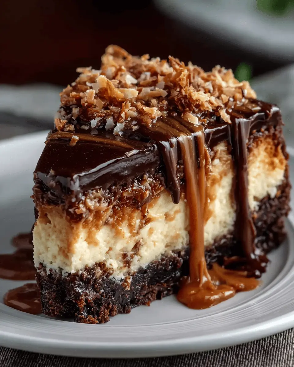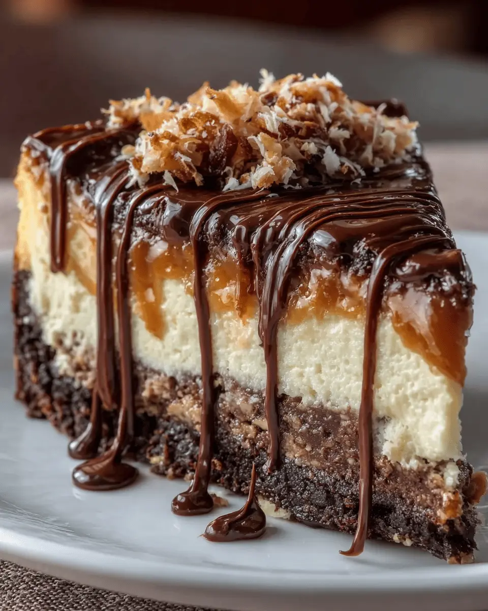 Dive into the full recipe to create your own slice of German Chocolate Cheesecake magic!