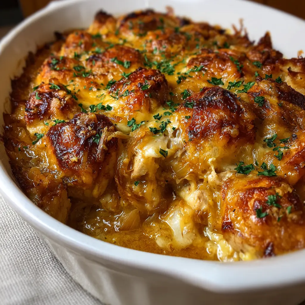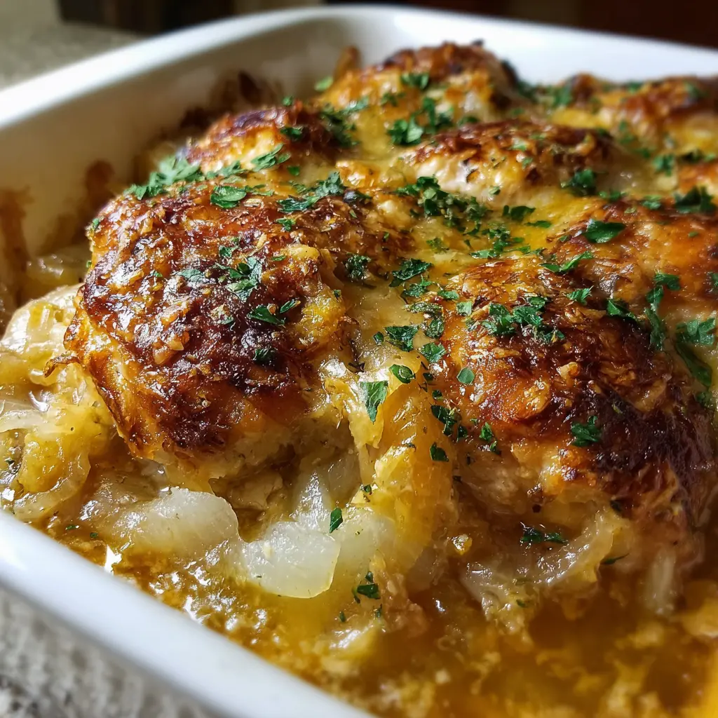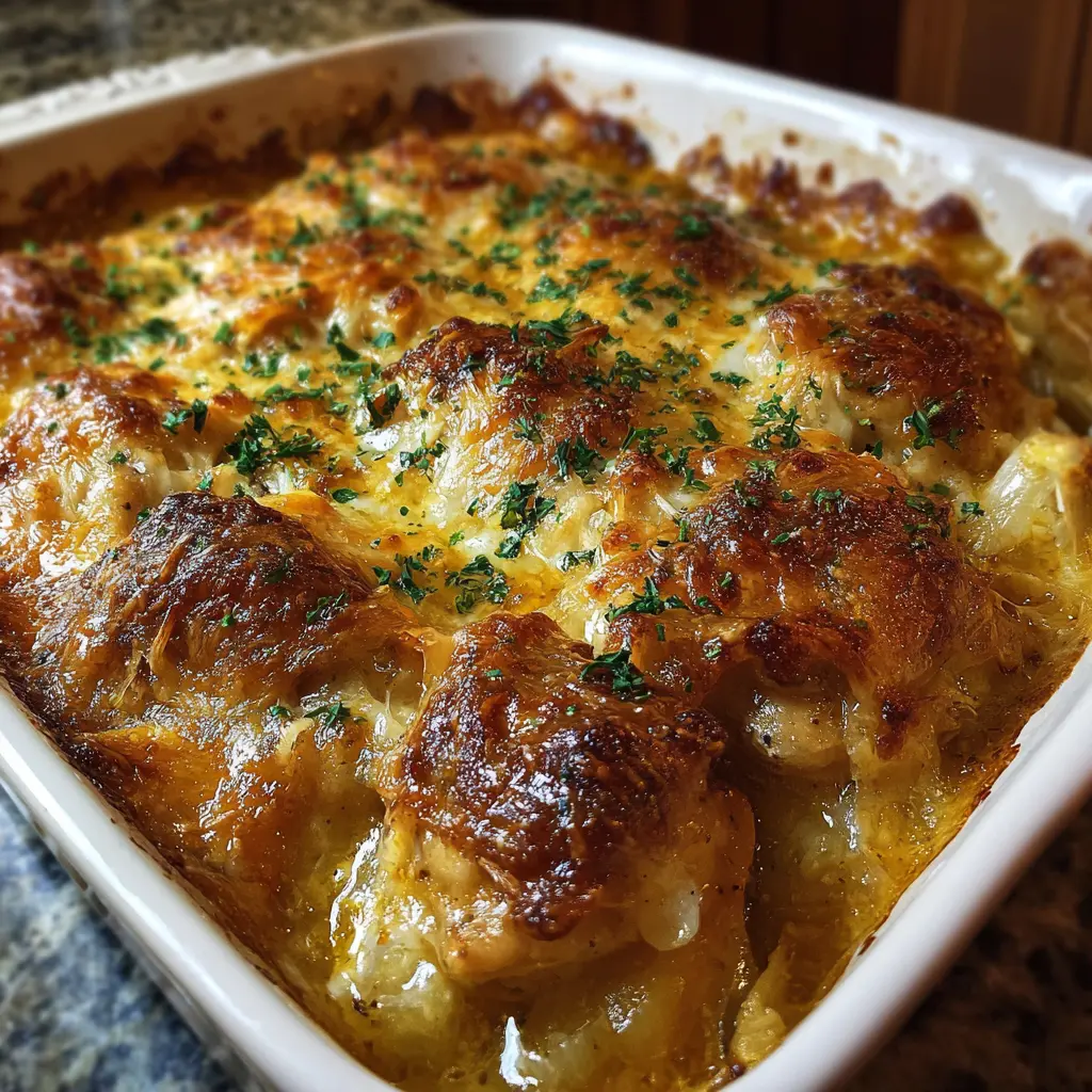 Enjoy this comforting Golden French Onion Chicken Casserole, perfect for family gatherings or cozy dinners.