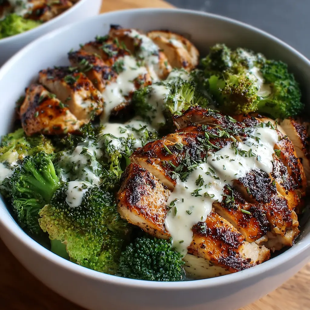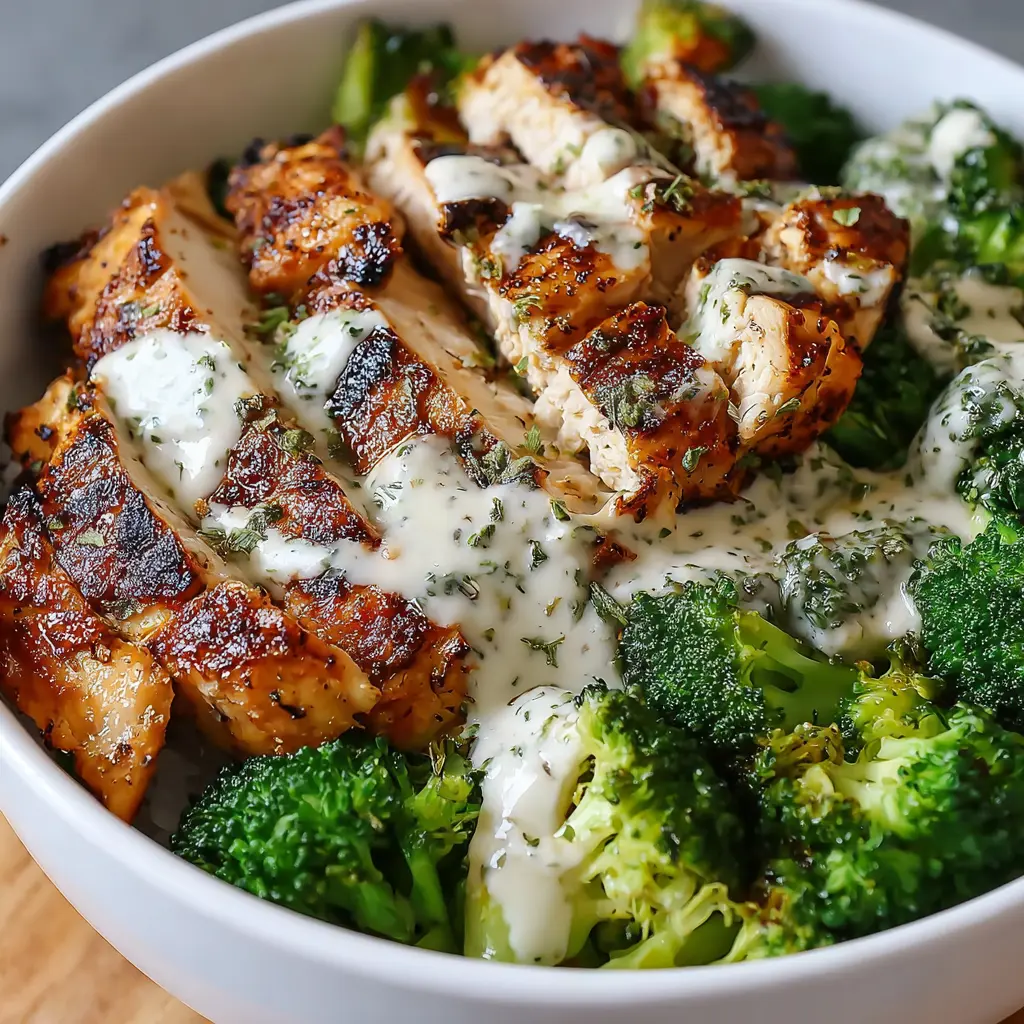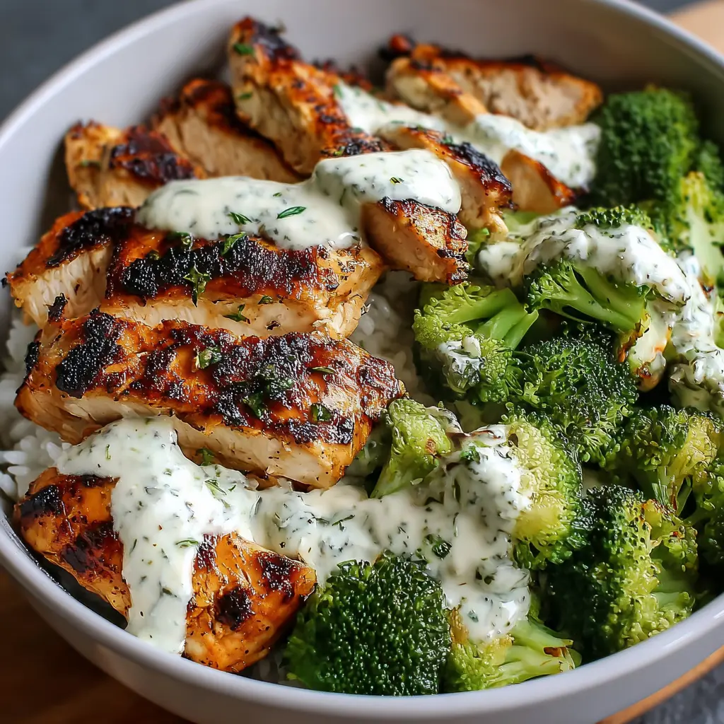 Grilled Chicken & Broccoli Bowls: Easy Creamy Garlic Sauce Recipe