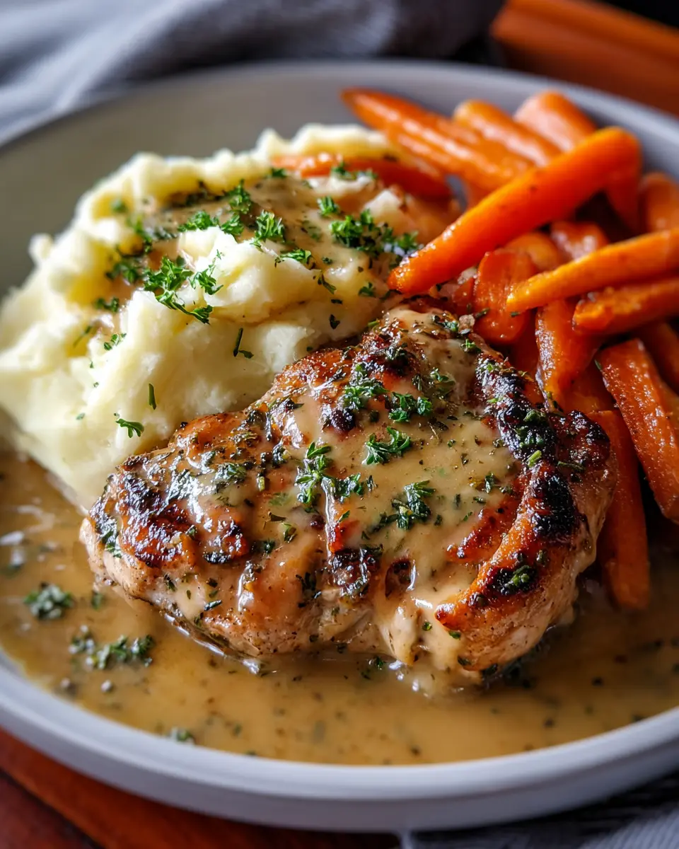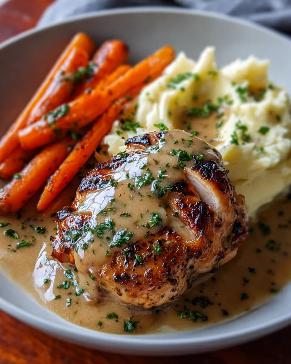 Herb Gravy Chicken: Indulgent Creamy Mash & Glazed Carrots Recipe