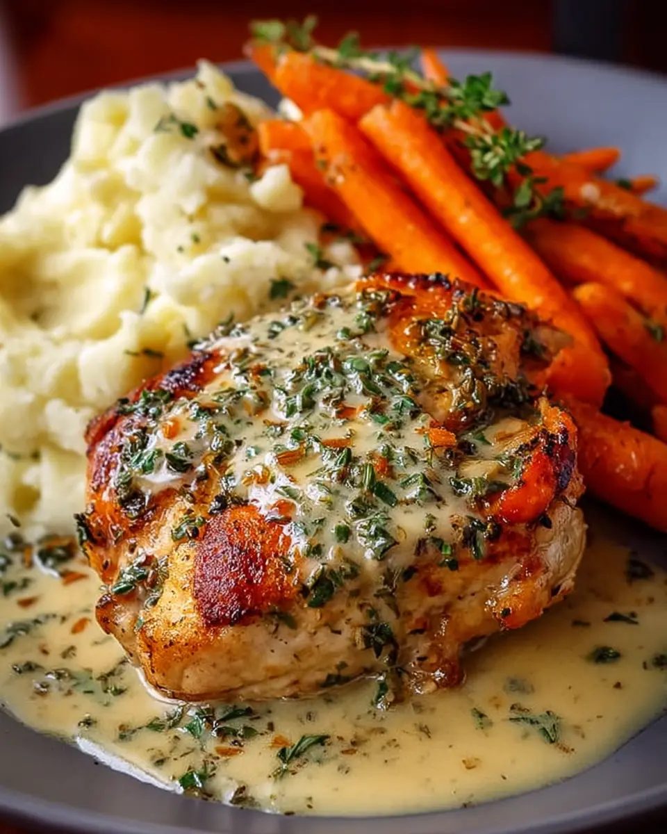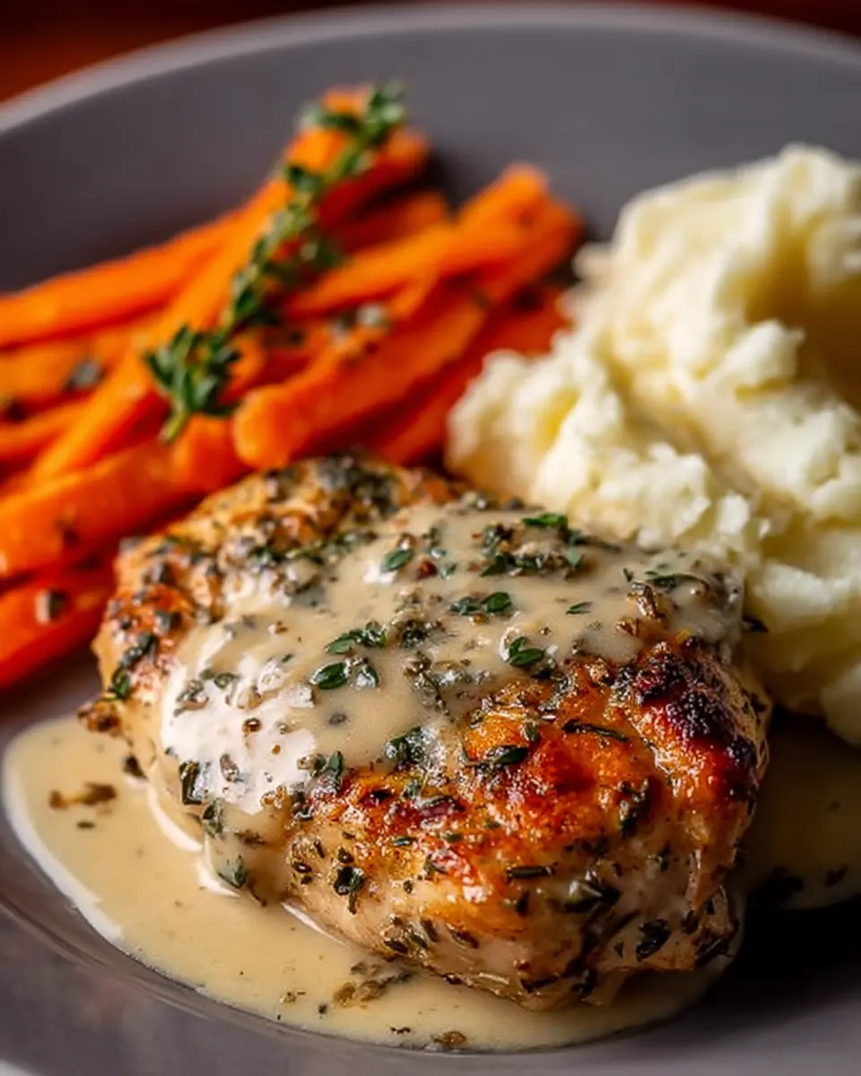 Herb-Crusted Chicken: Easy Comfort with Creamy Gravy & Sides