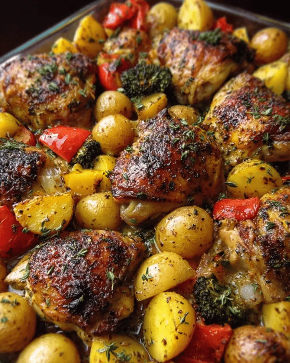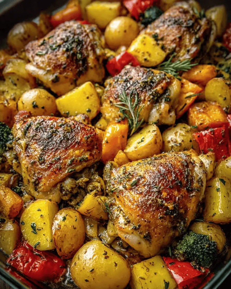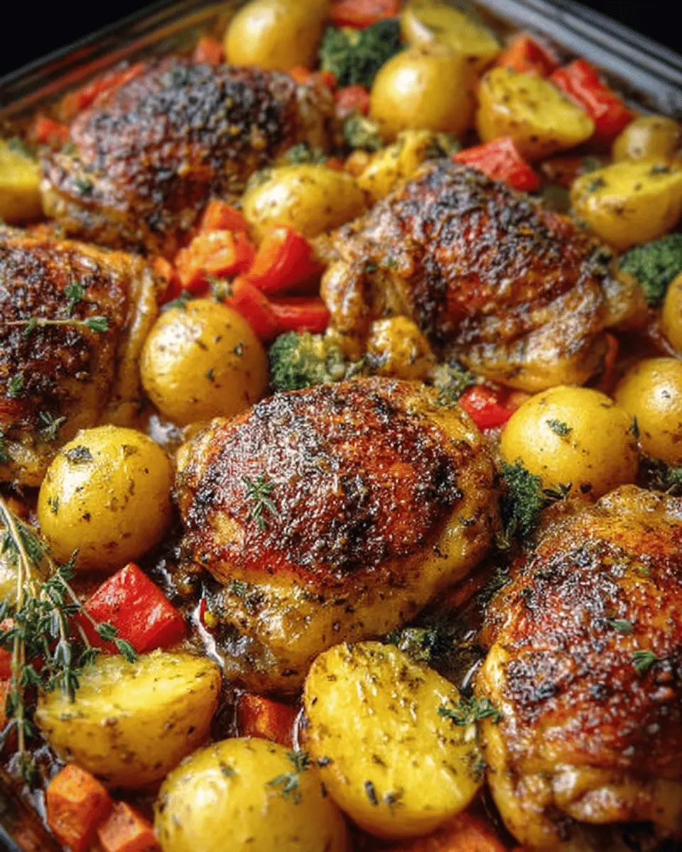 Herb-Roasted Chicken Thighs: Juicy Potatoes & Veggies Delight