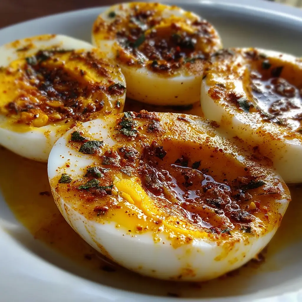 Once the eggs are cool, gently tap them on the countertop and peel them under cold running water to make the process easier. Now, it’s time for the fun part! Place the peeled eggs into a bowl and drizzle the Cajun butter sauce all over them. Gently roll or toss the eggs in the sauce to ensure they are thoroughly coated. Trust me, this is where the magic happens. You’ll want to gather every drop of that flavorful sauce!