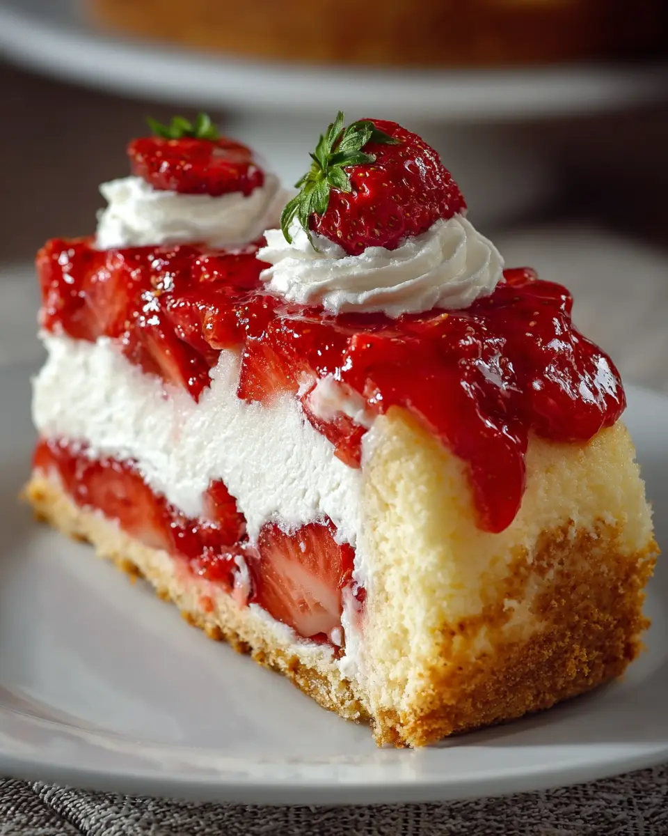 In summary, Homemade Strawberry Shortcake Cheesecake is more than just a dessert—it's a delightful celebration of flavors and textures. This treat combines the lightness of fresh strawberries, the creaminess of cheesecake, and the fluffy goodness of shortcake, creating a dessert that’s sure to impress your friends and family.
